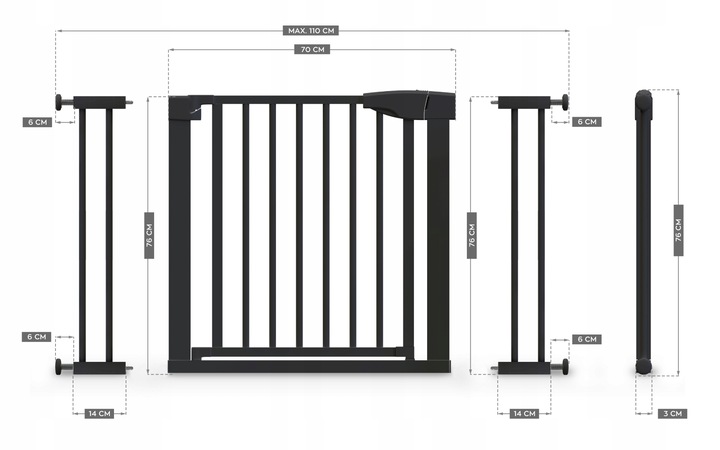 Оптимальна висота: Висота бар'єру становить 76 см, що достатньо для ефективного захисту входів, і в той же час достатньо низька, щоб не бути перешкодою для дорослих користувачів.