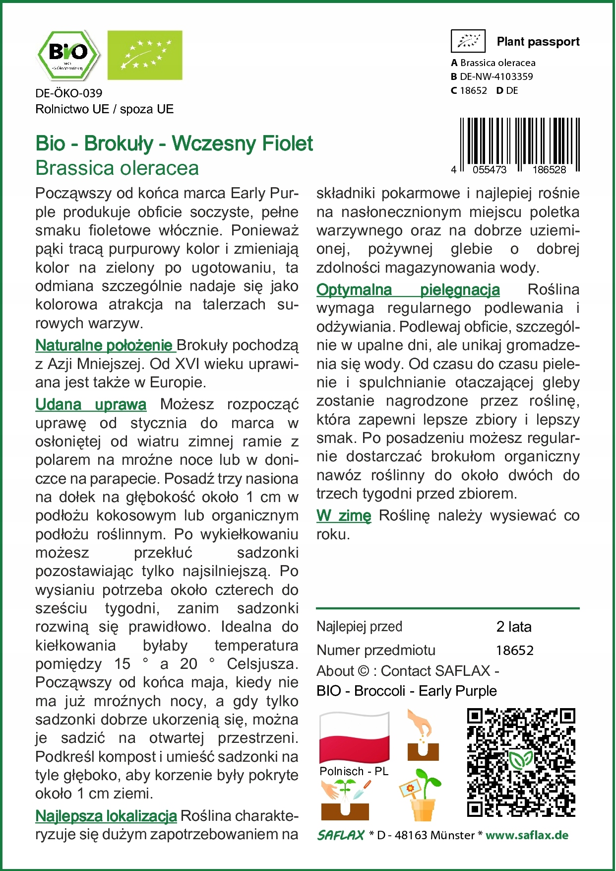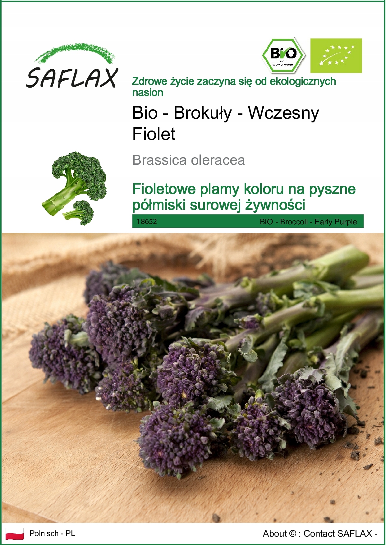 Просматривая «Saflax - брокколи - фиолетовый - 150 семян - Brassica», вы можете быть уверены, что данный товар из каталога «Остальные» будет доставлен из Польши и проверен на целостность. В цене товара, указанной на сайте, учтена доставка из Польши. Внимание!!! Товары для Евросоюза, согласно законодательству стран Евросоюза, могут отличаться упаковкой или наполнением.