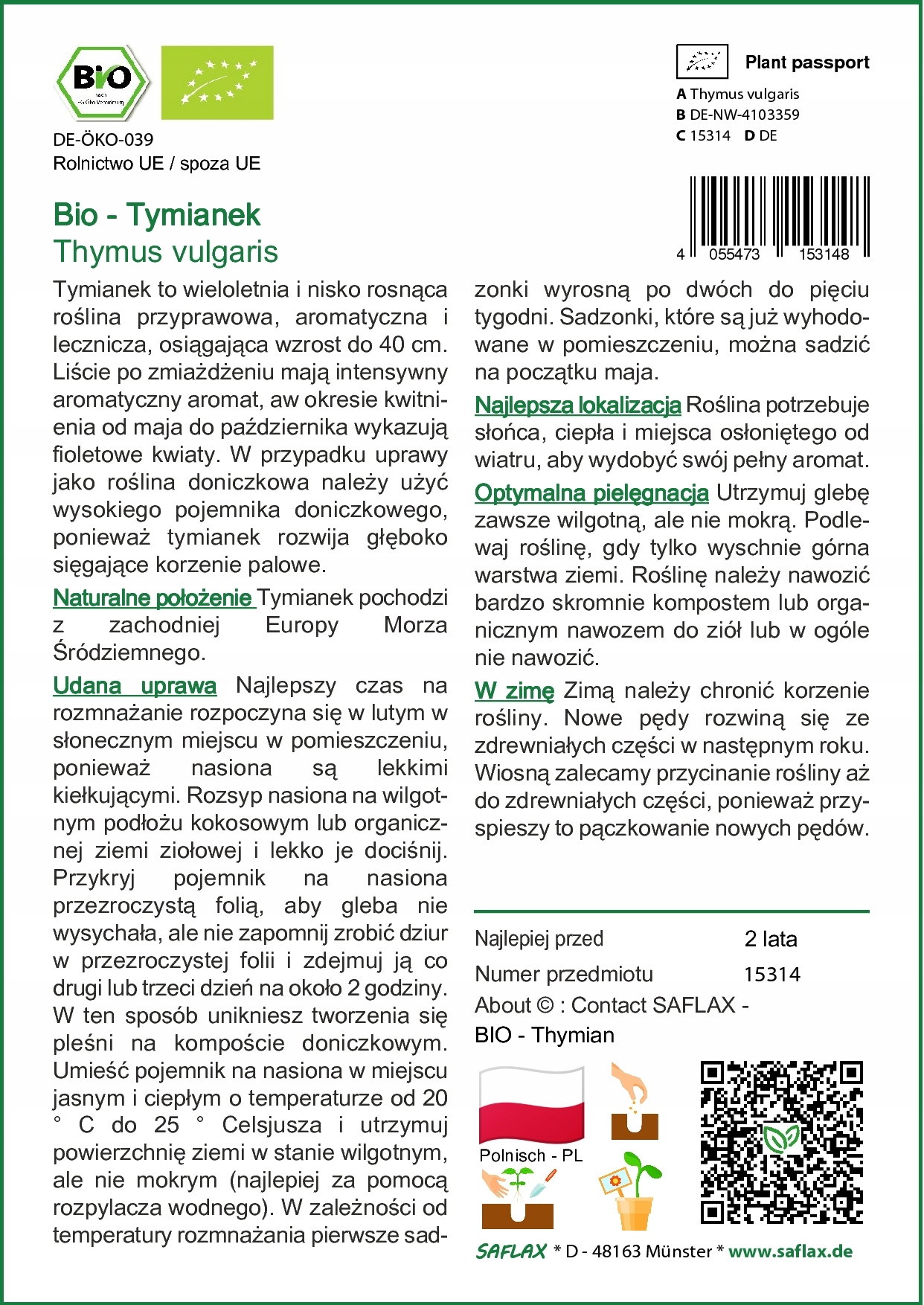 saflax - Bio - чебрець - 800 насіння - тимус vulgaris