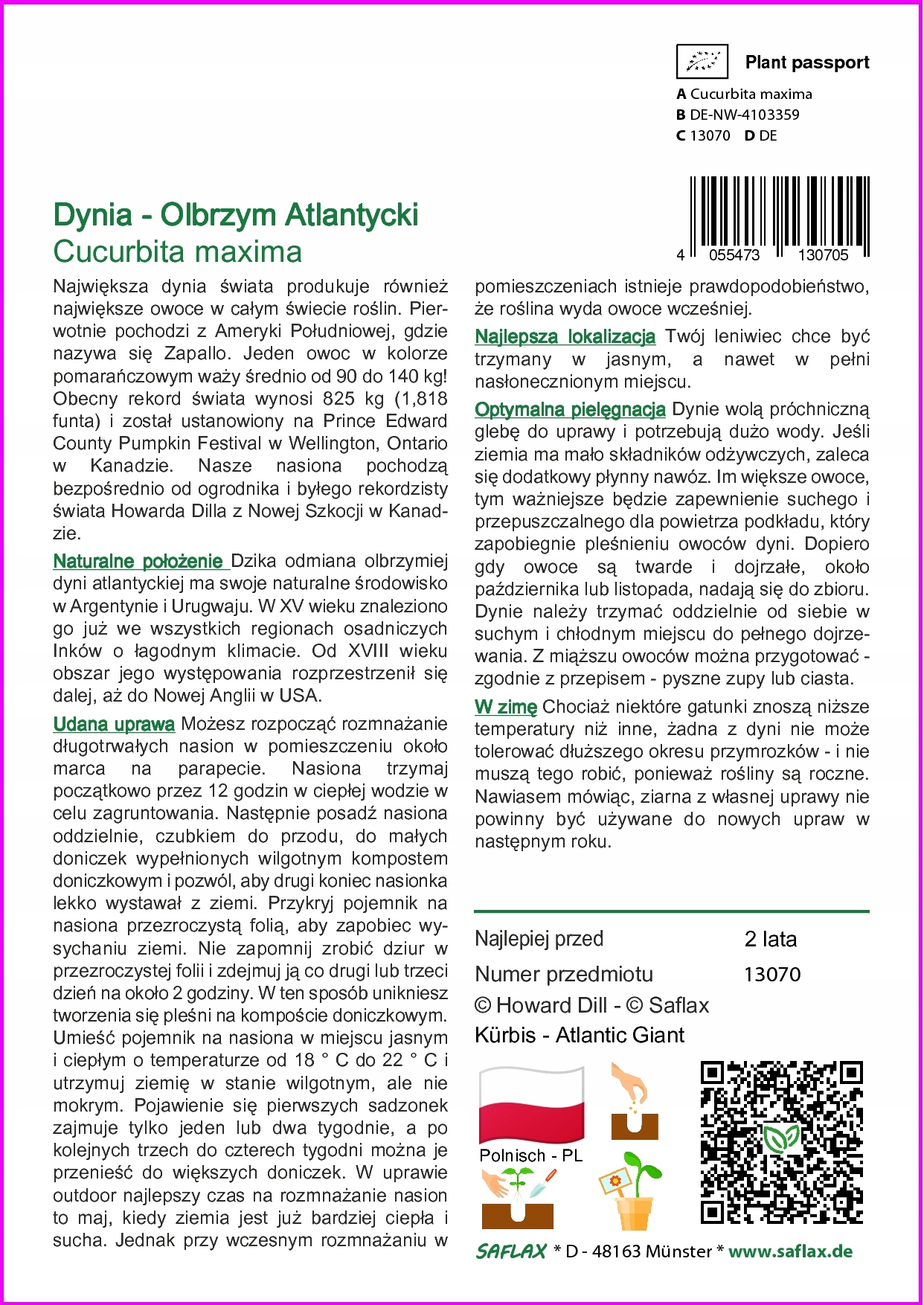 saflax - Гарбуз - Атлантичний гігант - 7 насіння - Cucurbita maxima