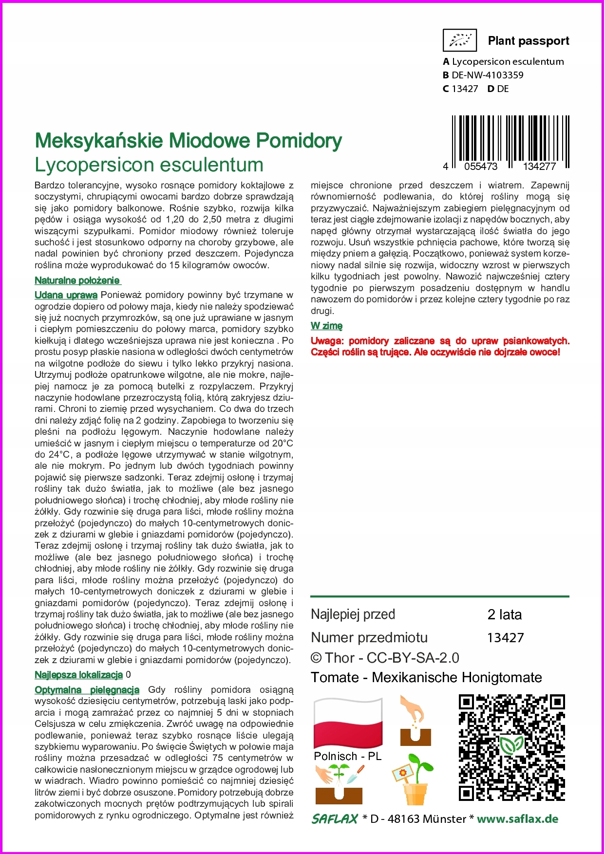 Просматривая «Saflax - медовый помидор - 10 семян - Lycopersicon», вы можете быть уверены, что данный товар из каталога «Остальные» будет доставлен из Польши и проверен на целостность. В цене товара, указанной на сайте, учтена доставка из Польши. Внимание!!! Товары для Евросоюза, согласно законодательству стран Евросоюза, могут отличаться упаковкой или наполнением.