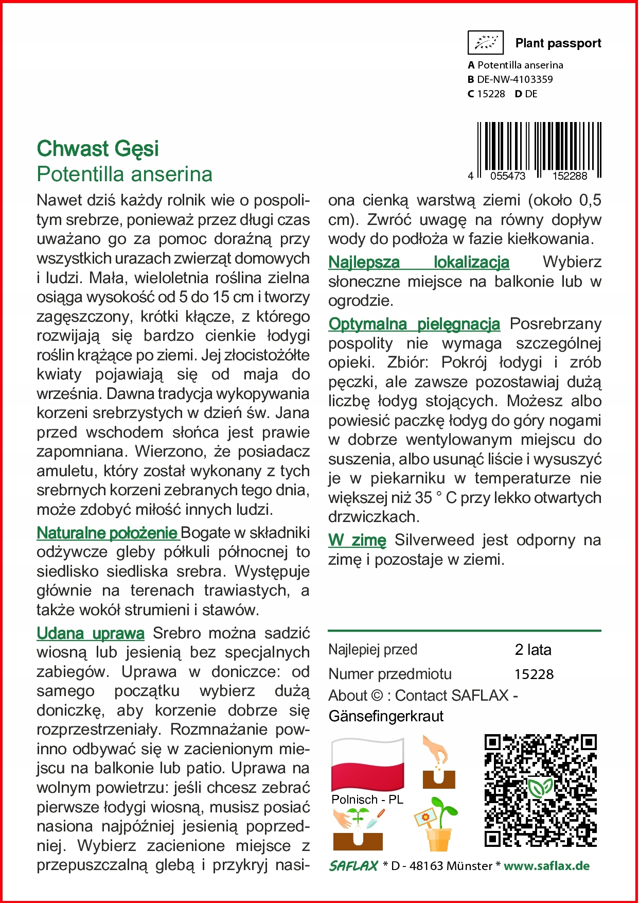 Оплачивая «Saflax - Pinmeter - 20 семян - потенциолла», вы можете быть уверены, что данный товар из каталога «Остальные» будет доставлен из Польши и проверен на целостность. В цене товара, указанной на сайте, учтена доставка из Польши. Внимание!!! Товары для Евросоюза, согласно законодательству стран Евросоюза, могут отличаться упаковкой или наполнением.
