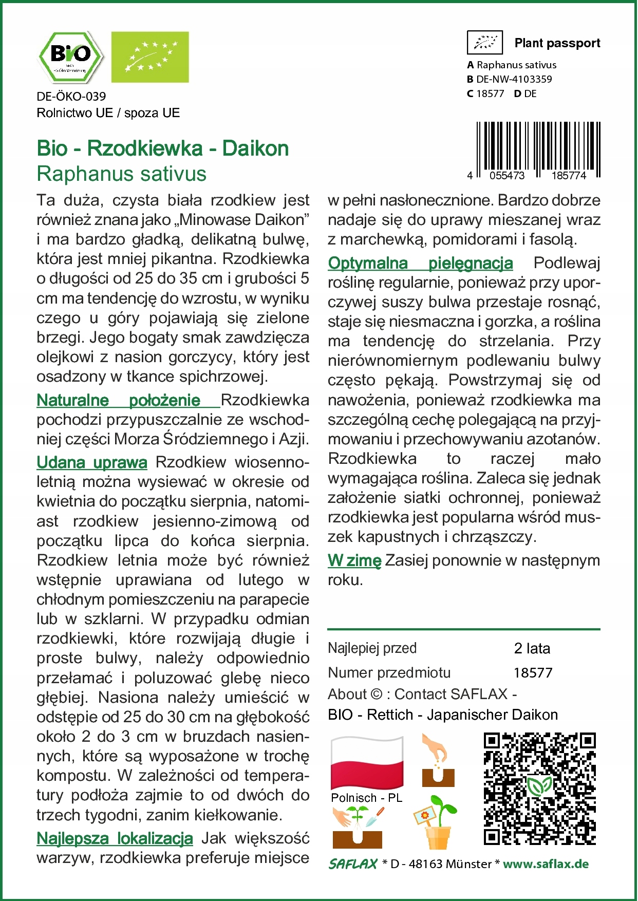 Saflax - редька - Дайкон - 100 насіння - з землею - Рафанус