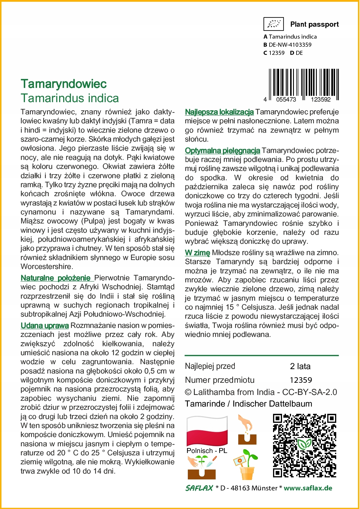 Оплачивая «Saflax - Tamaryndowiec - 4 семена - Tamarindus», вы можете быть уверены, что данное изделие из каталога «Остальные» будет доставлено из Польши и проверено на целостность. В цене товара, указанной на сайте, учтена доставка из Польши. Внимание!!! Товары для Евросоюза, согласно законодательству стран Евросоюза, могут отличаться упаковкой или наполнением.