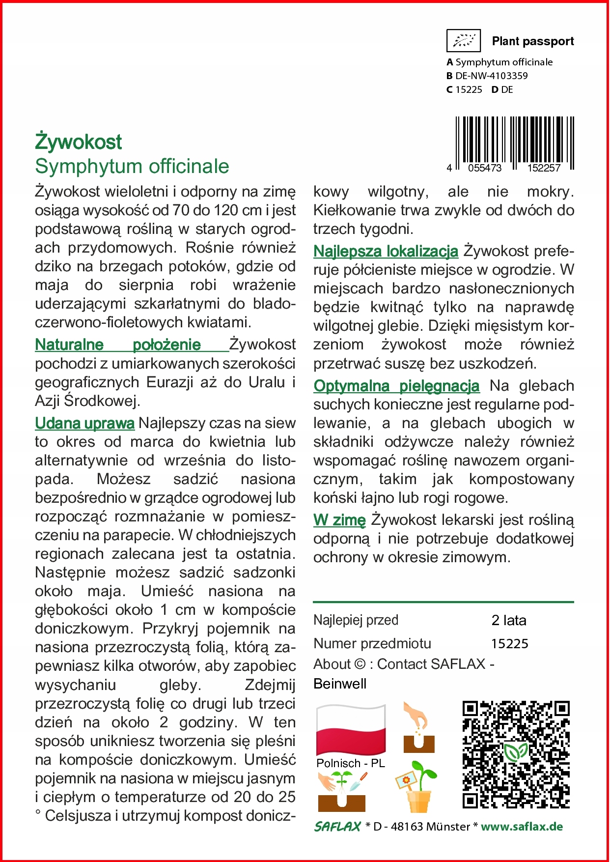 saflax - żywfa - 15 насіння - симфітум офіцера