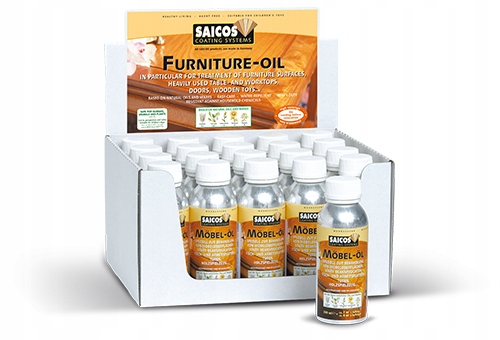 Меблеве масло Saicos створює природне покриття, яке захищає дерев'яні поверхні, які інтенсивно використовуються (столи, кухонні стільниці, двері, іграшки тощо). Виготовлений на основі натуральних масел, він екологічно чистий, захищає зсередини і дозволяє деревині залишатися гнучким. Після нанесення безбарвного шару поверхня стає стійкою до бруду та вологи, а також стає надзвичайно довговічною. Для отримання бажаного колірного ефекту необхідно гарненько розгладити поверхню і нанести два шари масла. Натуральні масла проникають глибоко в деревину і зберігають її гнучкість. Воски захищають і прикрашають поверхню, забезпечуючи високу довговічність і легкість догляду.