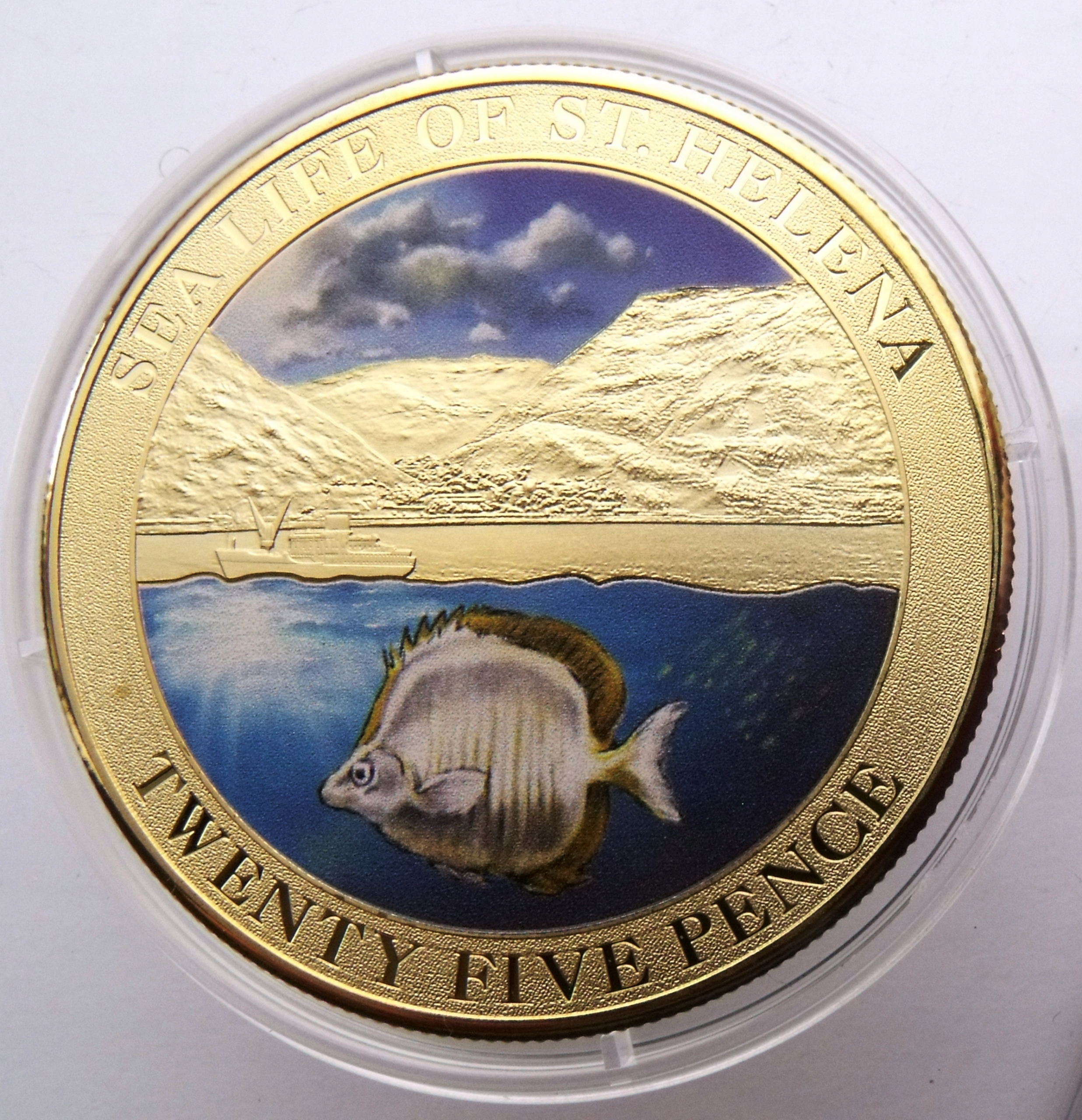 SAINT HELENA 25 PENCE 2013 FISH FLASER COLOR 39 мм