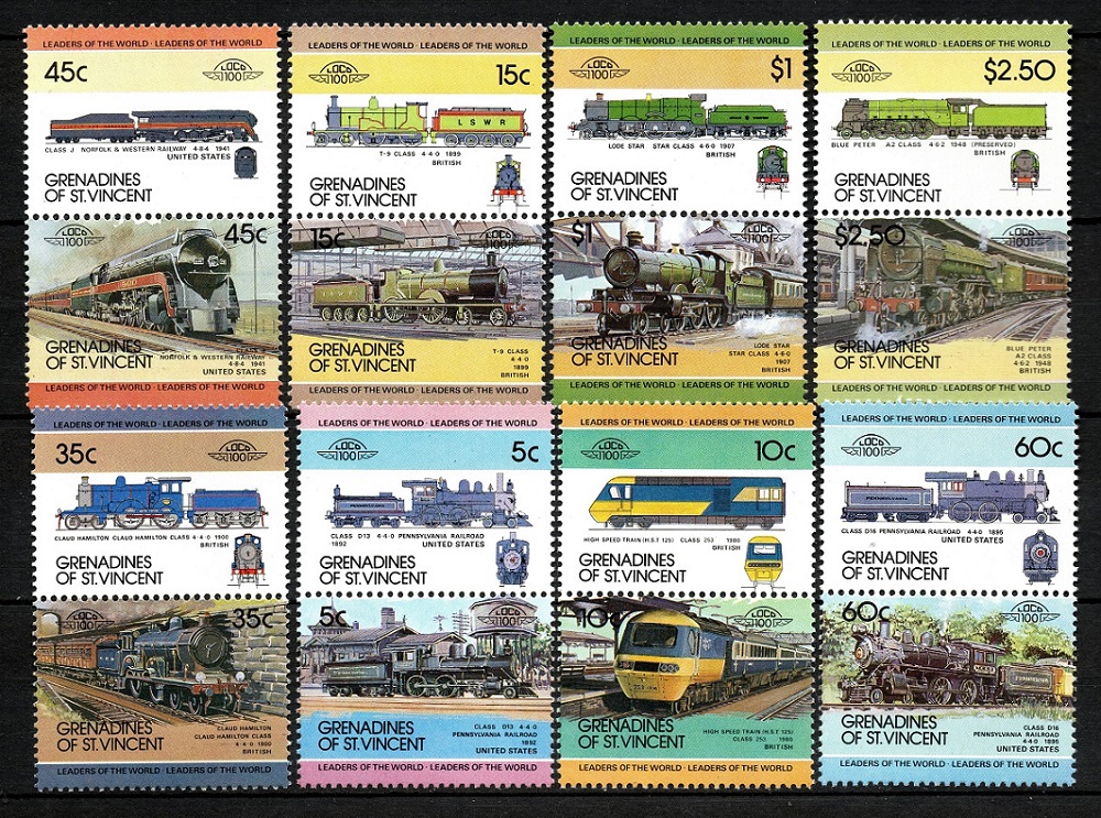 Saint Vincent i Grenadyny . Znaczki pocztowe ( Kolejnictwo ) czyste