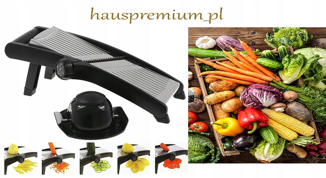 - У комплекті:Слайсер із регулюванням товщини, 6 змінних ріжучих лез Безпечна кришка для зберігання овочів Контейнер для нарізаних овочів