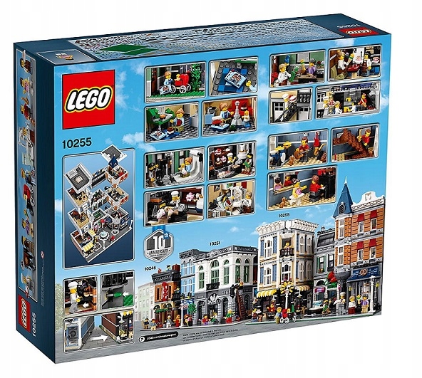 Набір було створено на честь 10-річчя серії модульних будівель LEGO® і пропонує багато інтригуючих деталей і прихованих сюрпризів, недоступних деінде. Будівлі розділені на секції, що легко розбираються. Знявши їх, ви отримаєте доступ до інтер’єру, повного деталей, який складається з першого поверху з пекарнею, квітковим магазином і кафе, середнього рівня з музичним магазином, фотостудією та кабінетом стоматолога, а також верхній рівень з танцювальною студією та квартирою, з якої є тераса на даху з барбекю. Поза будівлею є деталізована алея з садом кафе та фонтаном, ліхтарями, багатим фасадом з деталізованими вікнами та дверима, трьома магазинними вивісками, які можна зібрати, та гострою башточкою з декоративним дахом. Включає вісім мініфігурок плюс маленьку фігурку дитини.