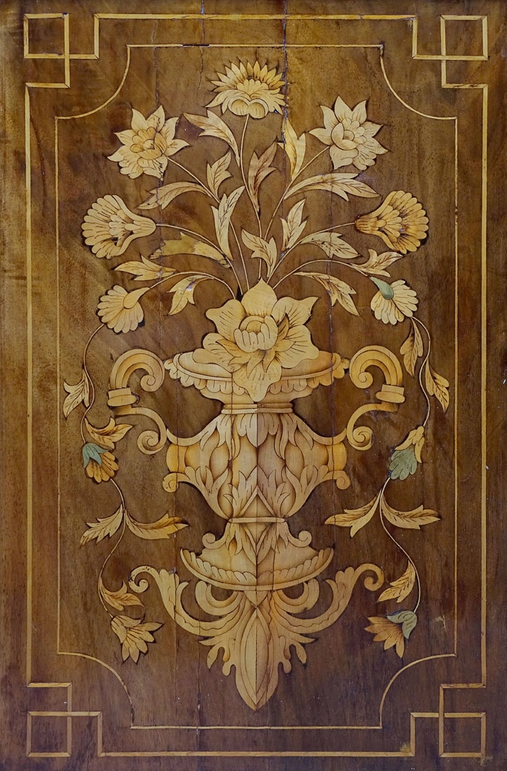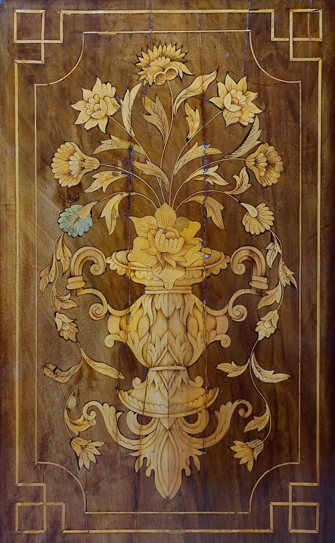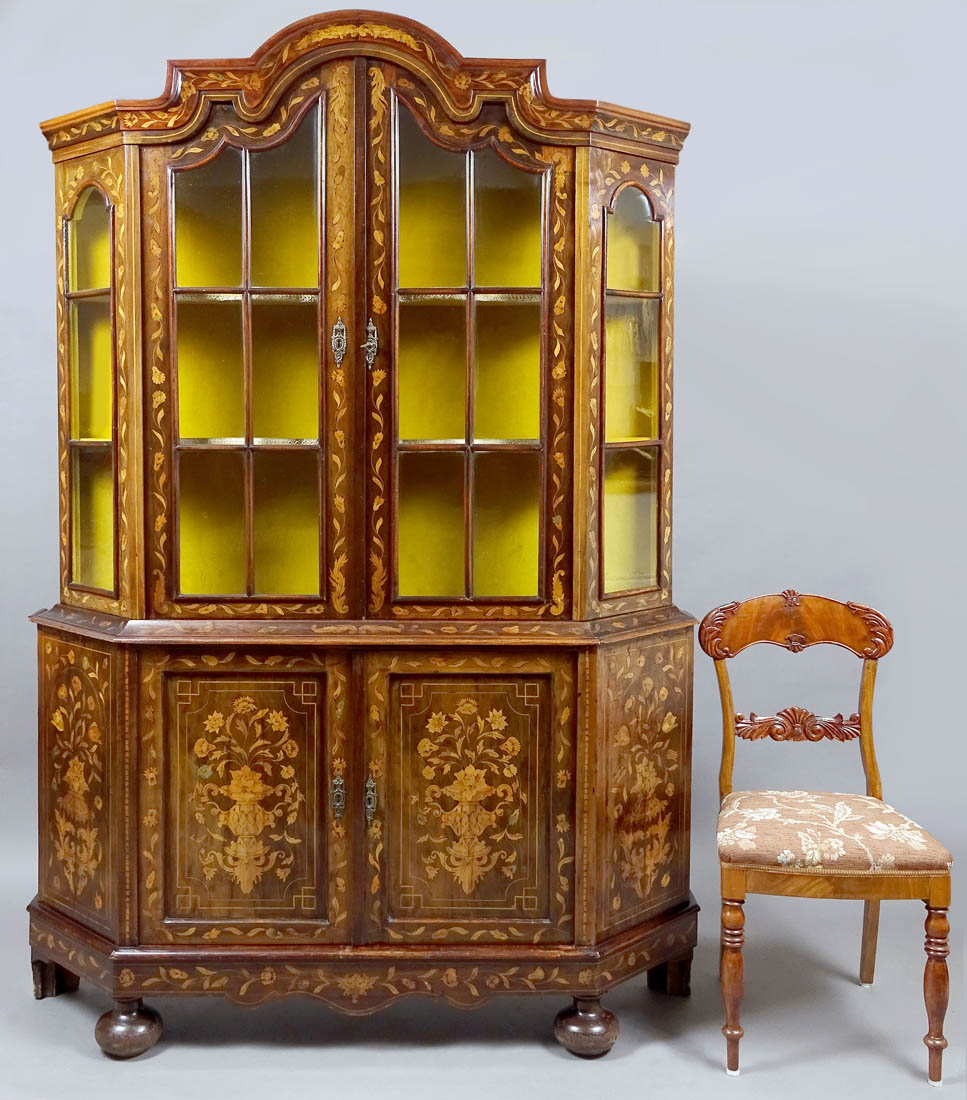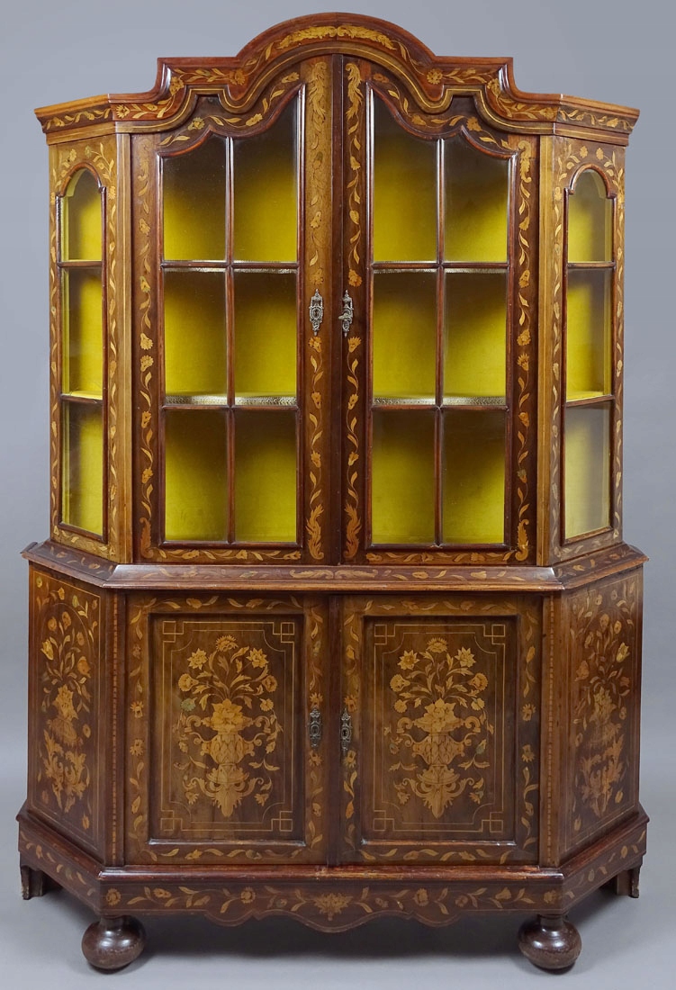 засклений з трьох боків і закрив пару дверей внизу, підтримується на чотирьох ногах, спереду у вигляді сплющених кульок, заднього хребта, що є розширенням структури меблів. Весь дуже багатий інфікований різними видами деревини дуже високої якості, зображуючи квіти, рослинні джгутики та гірлянди. З боків і дверей нижньої частини меблів, інтар у вигляді ваз з букетами квітів. Постановка з хвилястою короною та широкою, профільованою смужкою. Ціле закрито парою дверей з тонкими фігнями, в правому крилі заглиблене, сталевим замком з ключем, а також. Всередині обстановки два дерев’яні полиці, вистелені матеріалом, як і задня частина меблів. Основа з однією полицею всередині, також покрита матеріалом спиною.