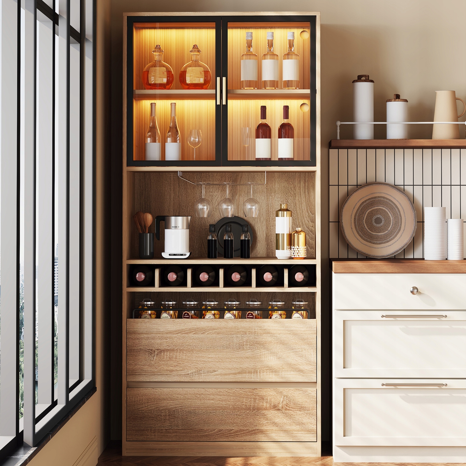 Сайт зі скляними дверима та лінійним освітленням, 180 см