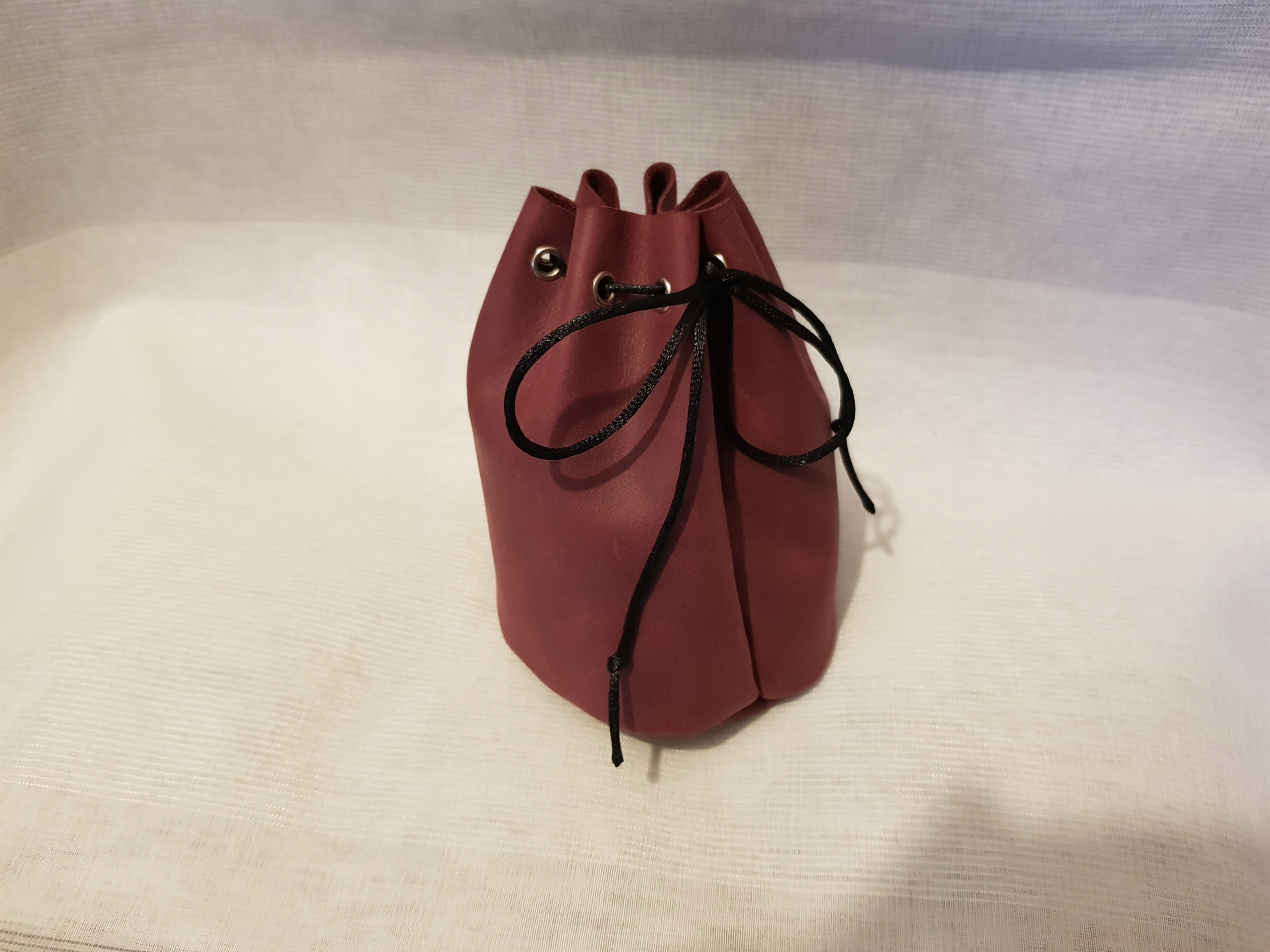 Sakiewka skórzana bordowa, woreczek ze skóry, mieszek skórzany fioletowy