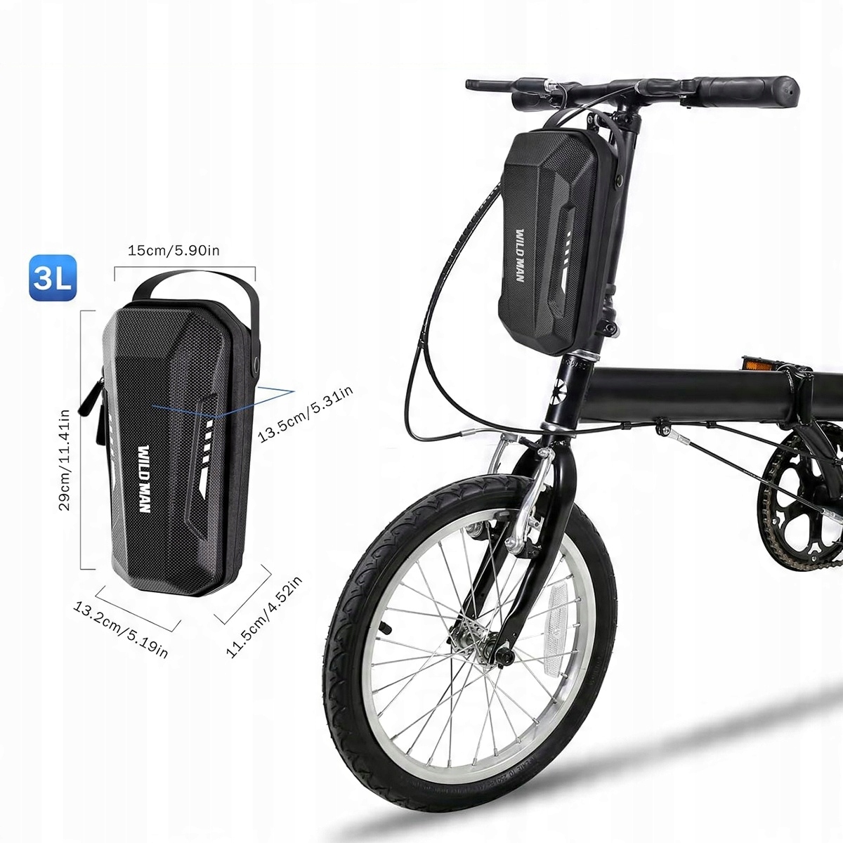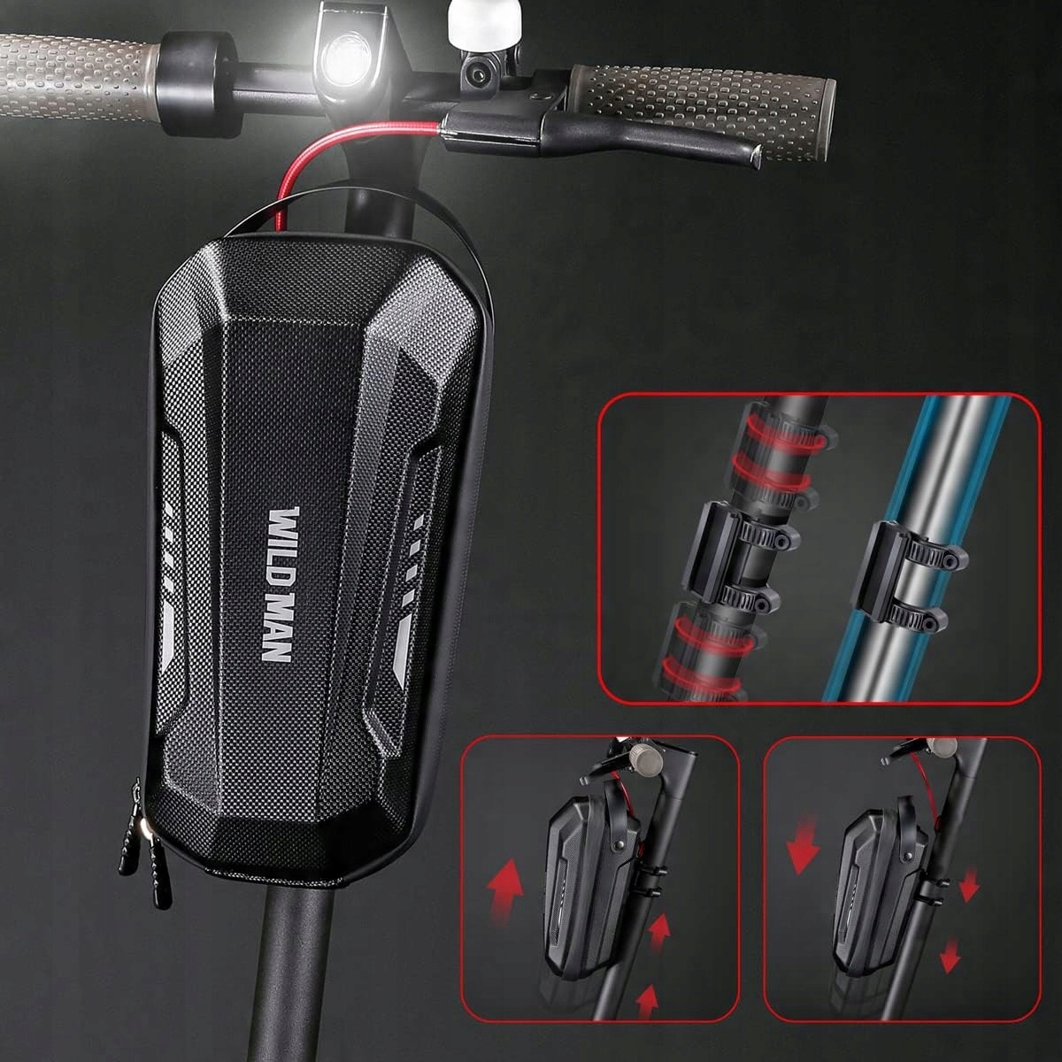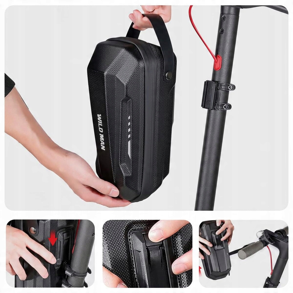 Дикий чоловік 3L Е Скутер Скутер - мішок для ручки, виготовлена з жорсткої оболонки EVA для електричних скутерів, водонепроникний з швидким вивільненням рамки - передній мішок для електричних скутерів Xiaomi Mijia/Sedway ES/Ninebot/Складений велосипед EVA (чорний)
