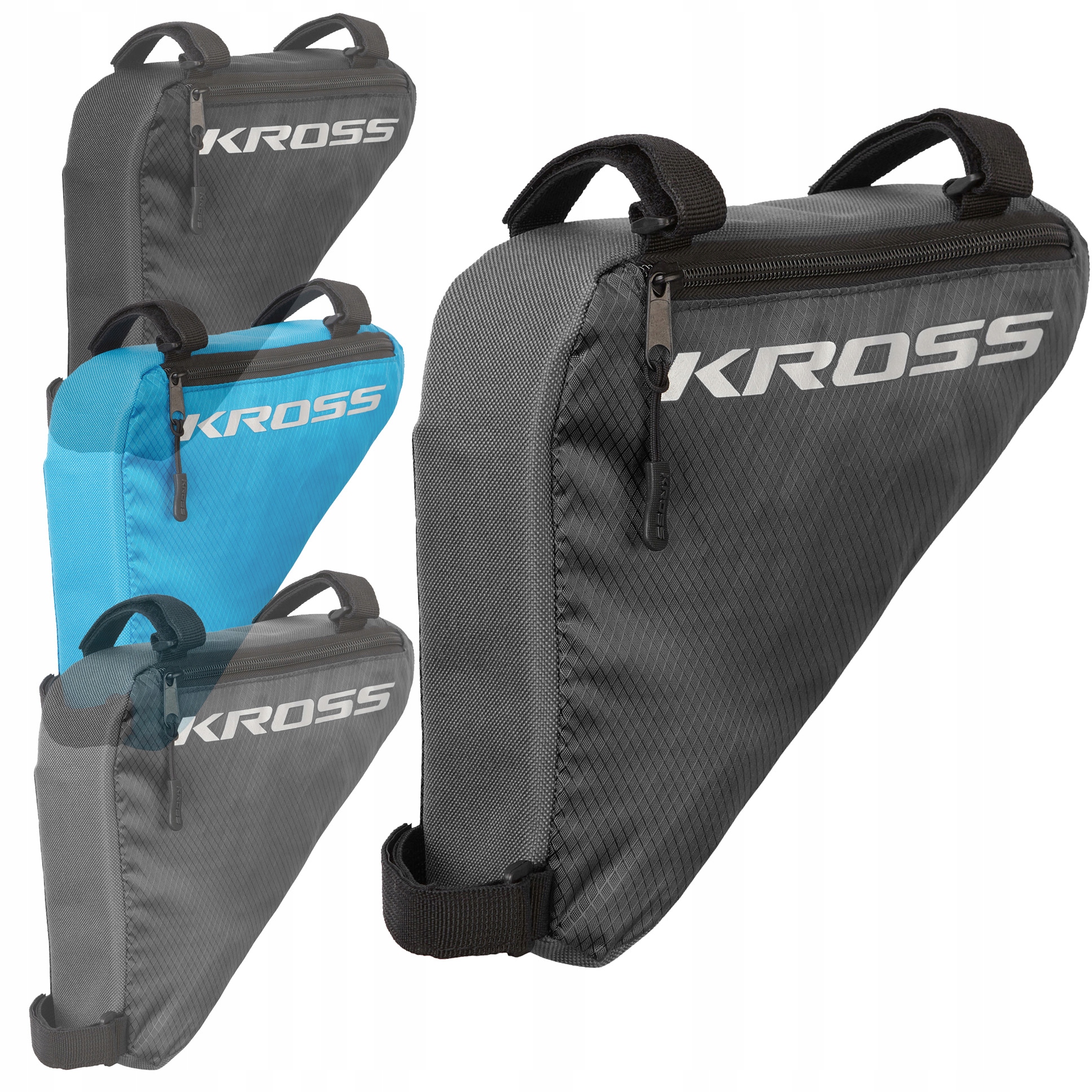 Triangle Bag Kross - сумка, створена для любителів велосипедних подорожей. Вона виготовлена з поліестеру, міцного та стійкого до пошкоджень матеріалу. Сумка оснащена міцними блискавками, які дозволяють довго використовувати. Вона кріпиться до верхньої труби рами велосипеда за допомогою липучок, тому не сковує рухів під час їзди.