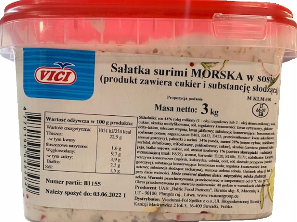 САЛАТ МОРСЬКИЙ СУРІМІ В СОУСІ 3КГ VICI