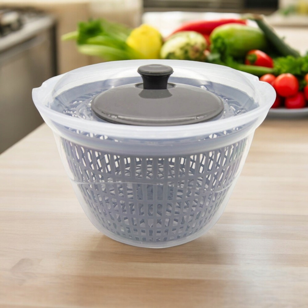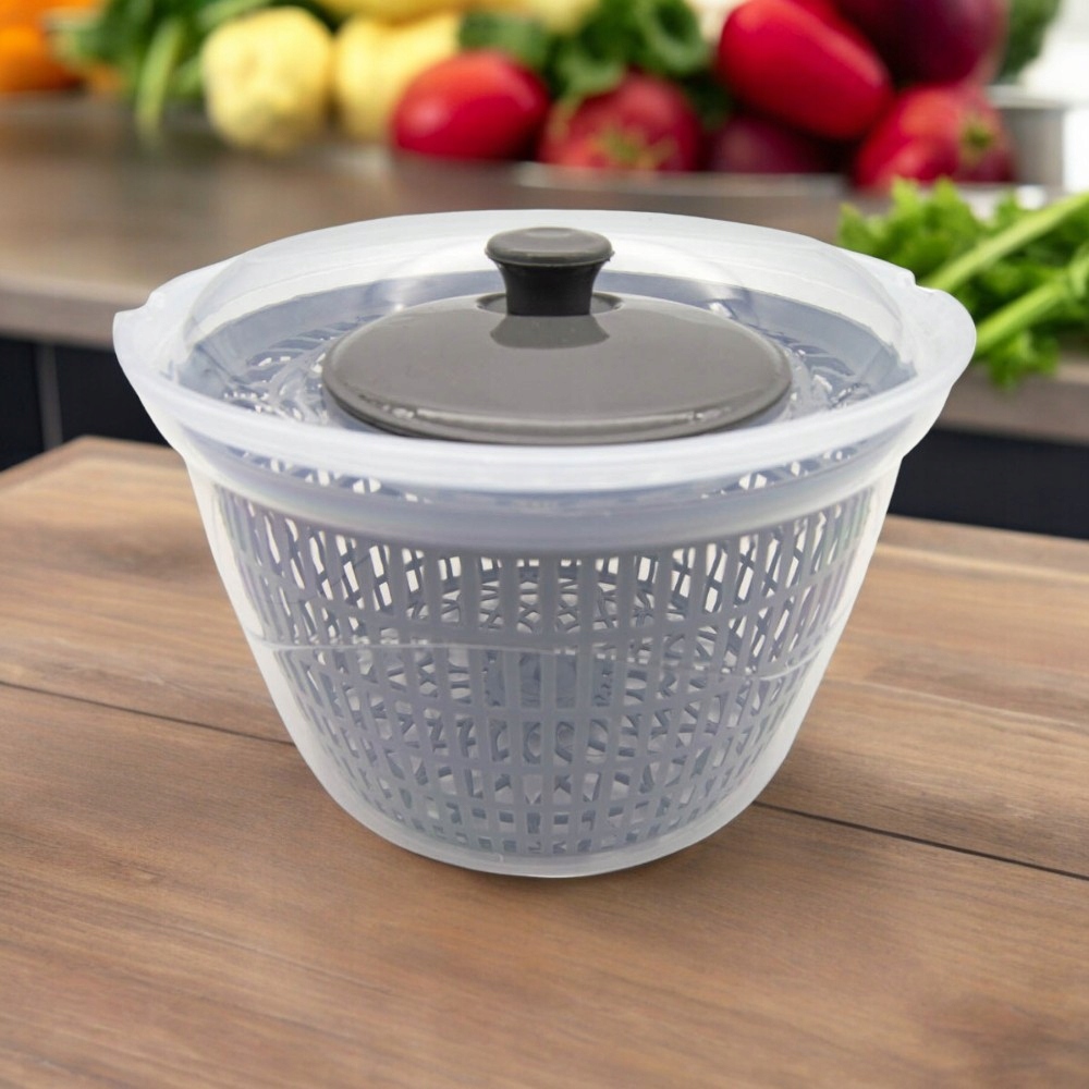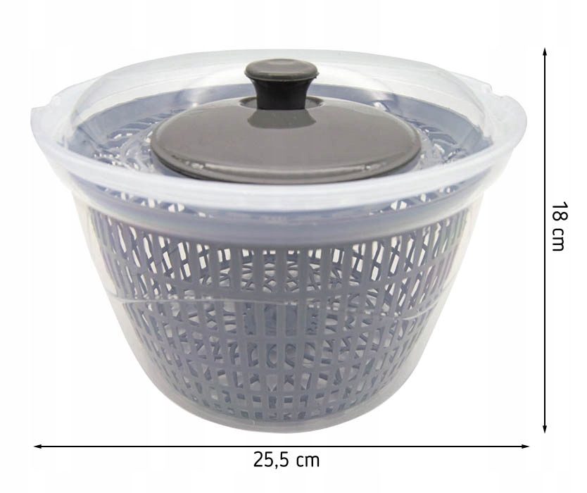 Виготовлена з найякіснішого пластику, садочниця є продуктом, який неймовірно стане в нагоді в кожному домі. Пластик підходить для контакту з харчовими продуктами і не містить шкідливих речовин, що дозволяє безпечно використовувати центрифугу для видалення зайвої води з салату та інших овочів і фруктів. Можливість розкласти об'єкт на кілька частин дає нам багато застосувань. Завдяки цьому ми можемо використовувати лише миску з кришкою, закритою на засувки, або ситечко - залежно від типу потреби.