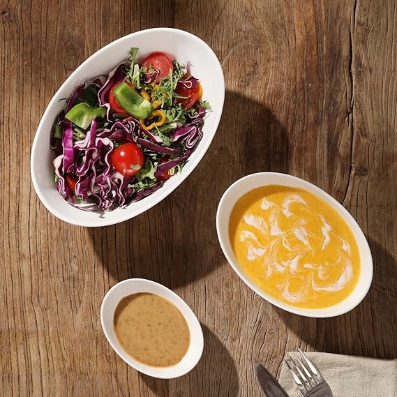 - Хороший розмір для різних продуктів харчування - кожна чаша містить 36 унцій/1060 мл (9 "довжина, ширина 6,5", 3 "глибини). Ідеально підходить для салатів, попкорну, охолодження та маринації
