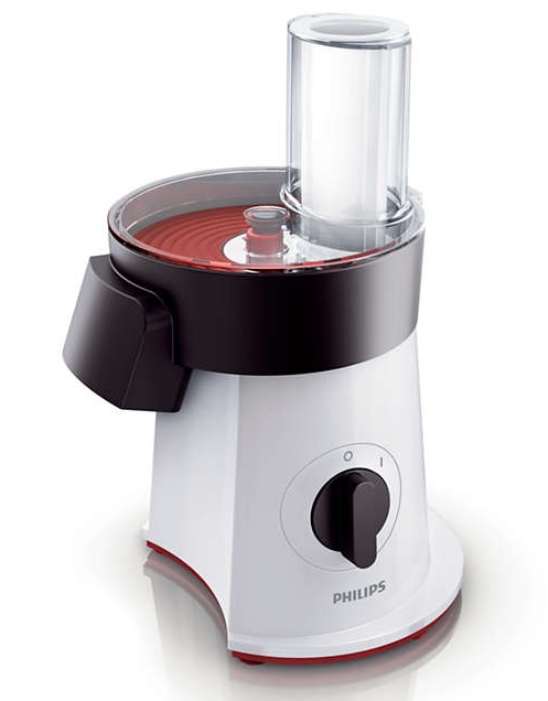 Функція готового до подачі салатника Philips дозволяє нарізати інгредієнти безпосередньо в миску, каструлю або вок. Високий носик дозволяє використовувати високі контейнери великої місткості, що означає менше посуду для миття після завершення приготування їжі.