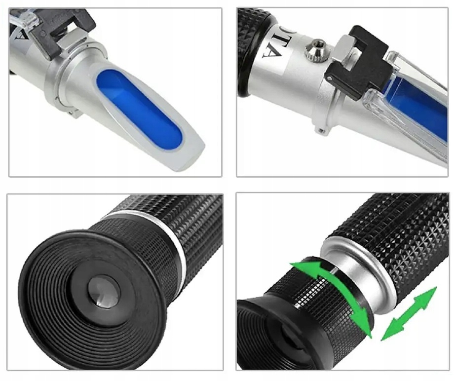 - Просте калібрування за допомогою одного гвинта (рефрактометри відкалібровані на заводі та не потребують калібрування)