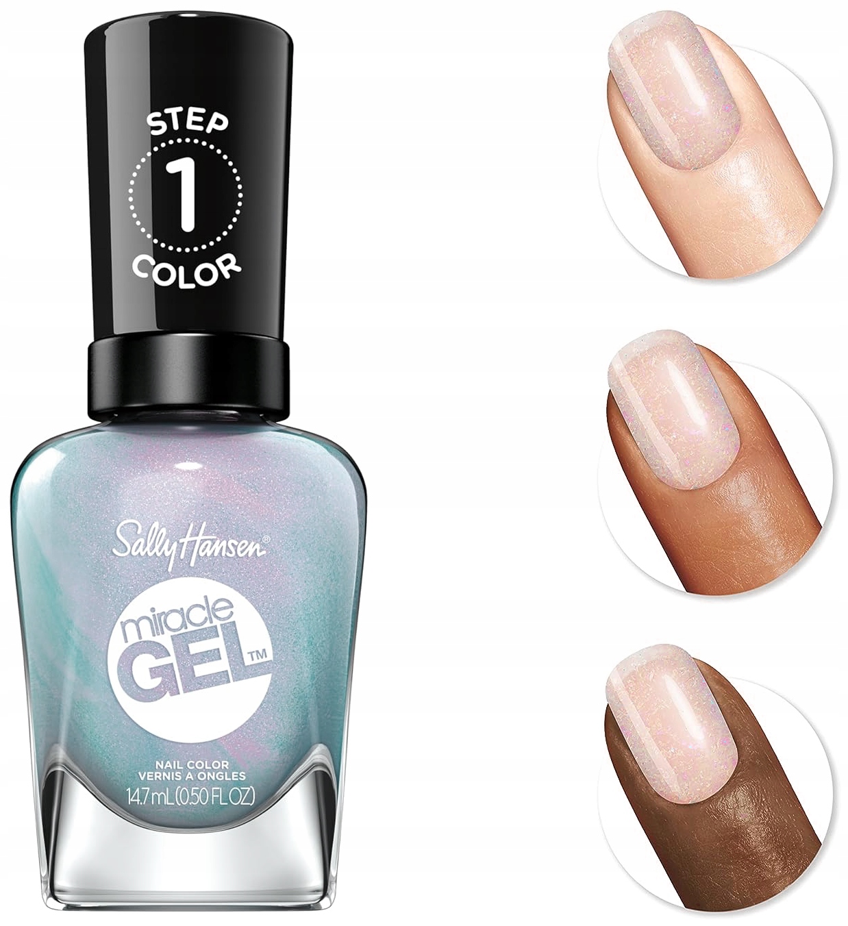 Опис лінії Miracle Gel лаків: Перший гібридний манікюр, як з професійного салону краси, не виходячи з дому і без лампи! Поєднання прозорості кольору та технологічно передового гелю. Нова запатентована лінійка Miracle Gel включає продукти, які є наполовину лаком і наполовину гібридною манікюрною системою, що гарантує ефект до 14 днів, без необхідності використання LED/УФ-лампи. Досить двох простих кроків: нанести два шари кольорового лаку Miracle Gel Color Coat, а потім покрити нафарбовані нігті Top Coat Miracle Gel Top Coat, щоб зручно досягти довготривалих результатів і унікального, блискучого та глибокого кольору. Ємність: 14,7 мл.