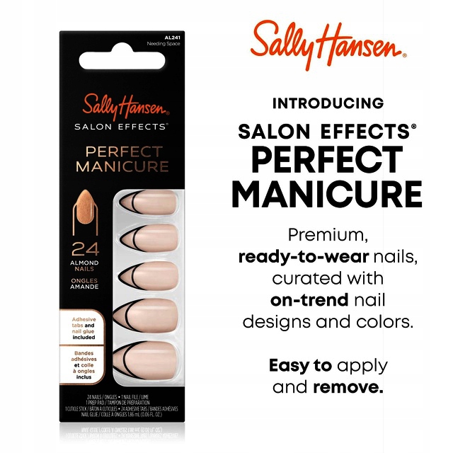 Sally Hansen Salon Effects® Perfect Manicure — це готові накладні нігті, які за кілька хвилин забезпечать вам професійний ефект — без пошкодження натуральної нігтьової пластини.