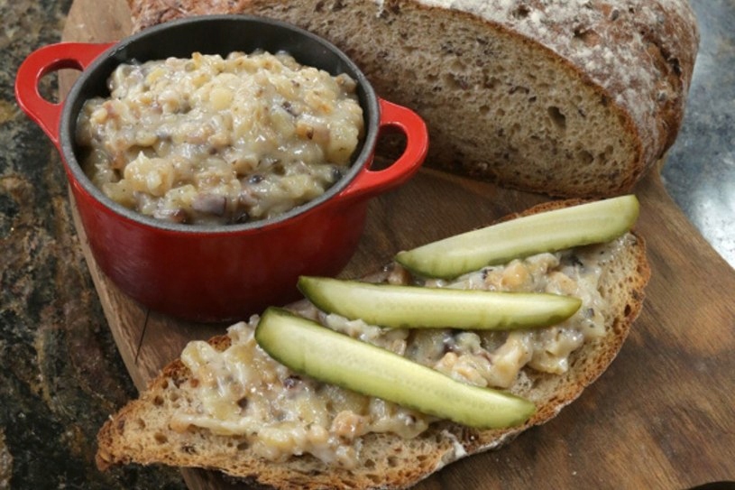 Сало зі шкварками, цибулею, копченим беконом та ковбасою меленою зі спеціями. Багатство смаків і ароматів. Справжня домашня кухня.