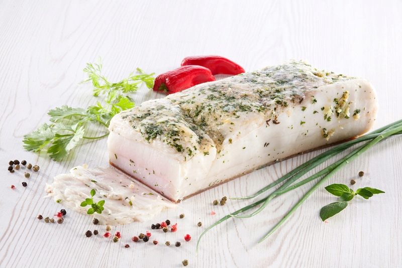 Це ідеальна закуска - закуска, особливо до прозорих горілок.< /h1> Додавання зелені та петрушки перетворює звичайний бекон у вишукане холодне м'ясо.