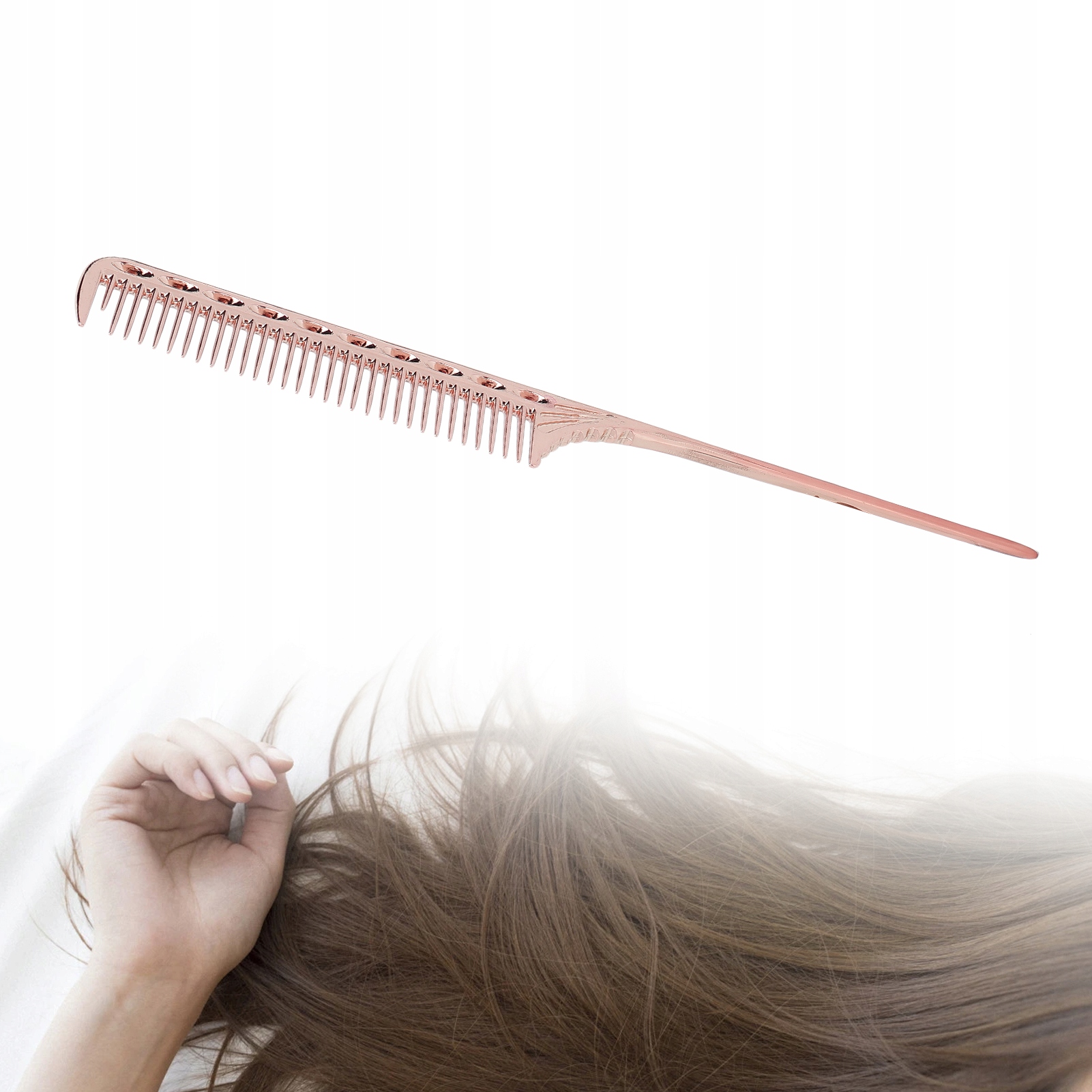 Професійна гребінець з хвостом щурячого перукарня гребінця для стилю перукаря Алюмінієвого металу Grzebieńrose Gold