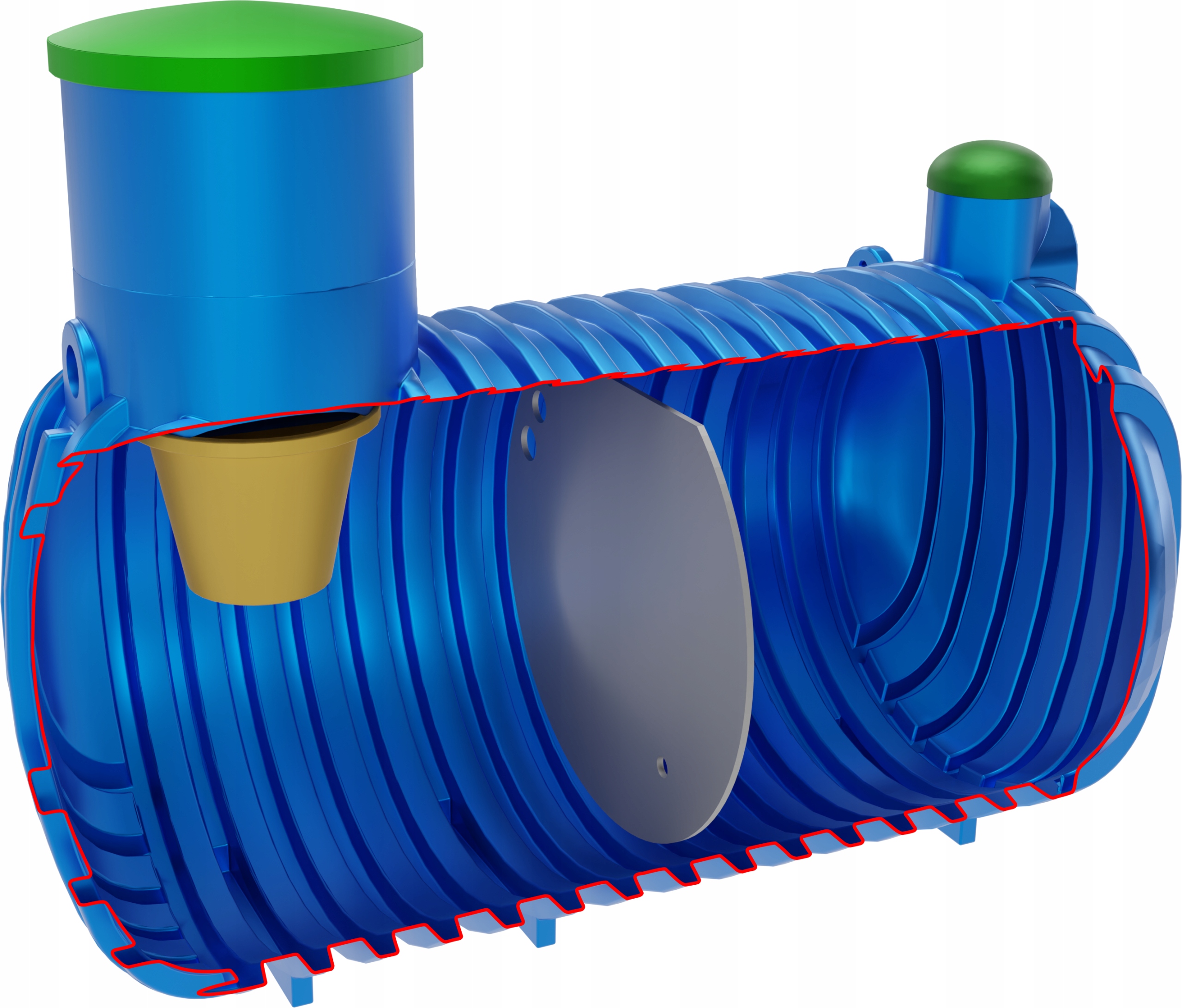 ✔ -мокно та щільне ребро з резервуара надає структурі високу жорсткість і міцність. Що дає можливість монтувати резервуар у всіх ґрунтових умовах без цементу -сміду та високої глибини.