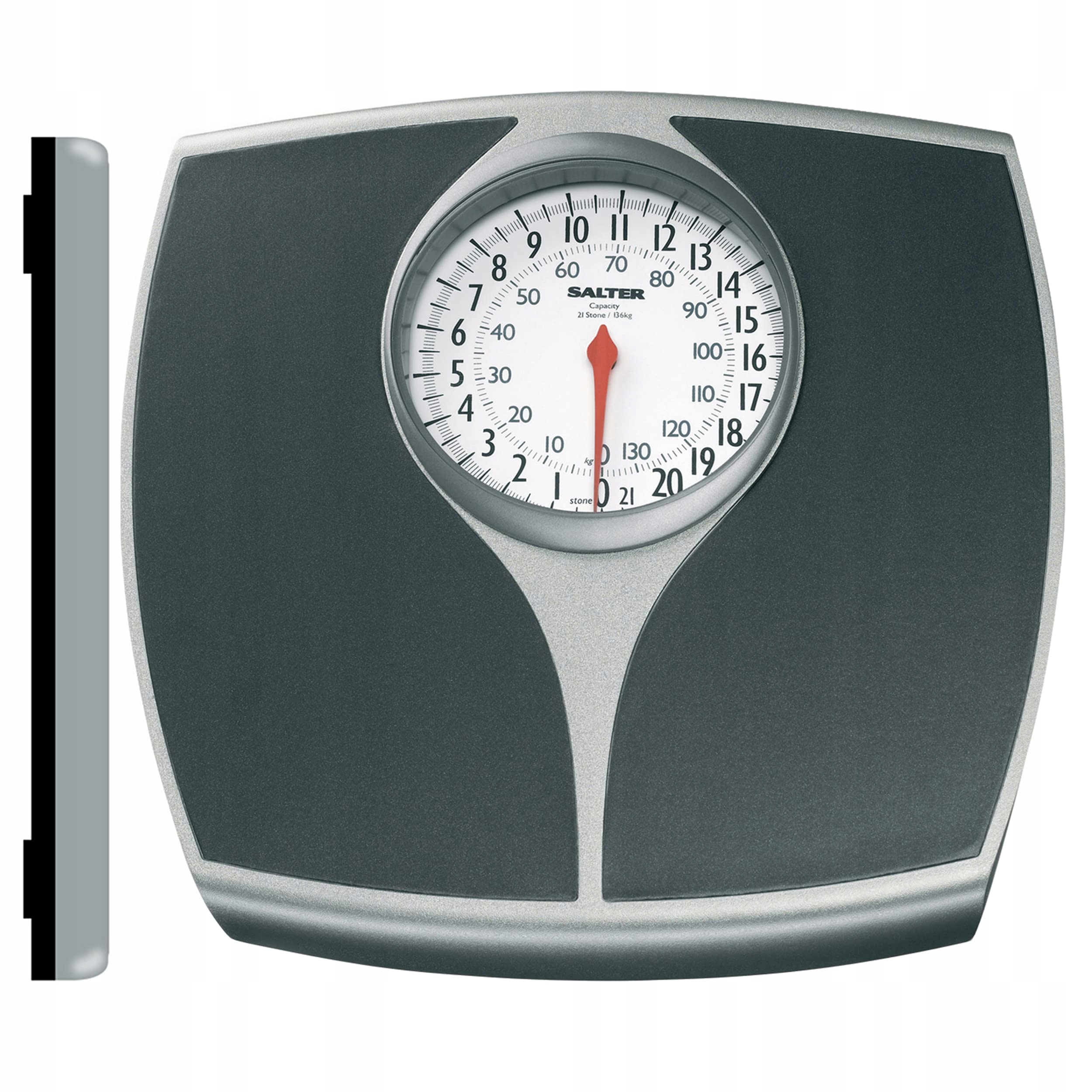 Механічна вага Солтера - ідеальне доповнення до кожної ванної кімнати і ідеально підходить для легкого для управління ваги тіла. Завдяки використанню килимових носів вага підходить для нерівної поверхні. Пристрій є суцільним і простим у використанні, все, що вам потрібно зробити, - це ввести шкалу, щоб побачити результат через деякий час. Завдяки асортименту до 136 кг та великій платформі, яка дає багато місця для ніг, ця класична вага підходить для всіх. Ваги одиниць можна перемикати між метричною та імперською, залежно від потреб.