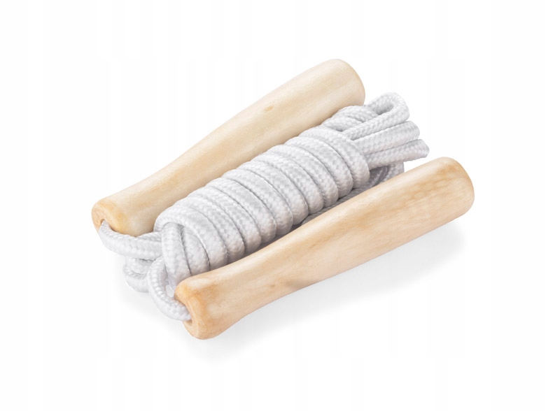 Пропускна мотузка-один із тих інструментів, які не послаблюються. Стрибки на мотузці пропускання працюватимуть як теплий, головна частина тренувань, а також може бути використана для гри. Це ідеальний продукт для дорослих та наймолодших. Пропускаюча мотузка має дерев’яні ручки, а кабель - з поліестеру.