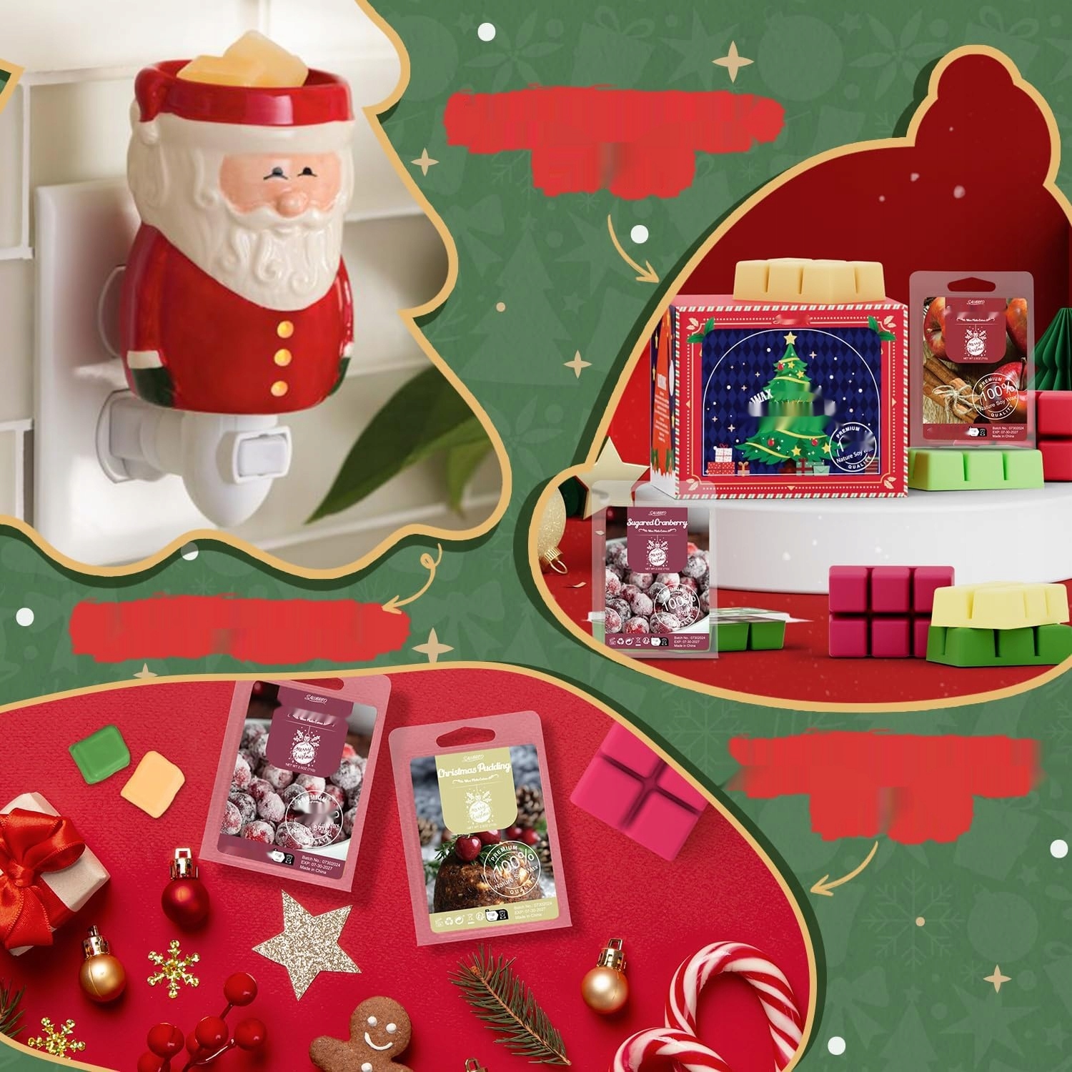 - Різноманітність ароматів: Містить вісім найпопулярніших сезонних ароматів, таких як різдвяна ялинка, імбирний пряник, яблуко з корицею, цукрова тростина, журавлина з цукром, омела, різдвяний пунш, різдвяний пудинг, шоколадний пиріг.