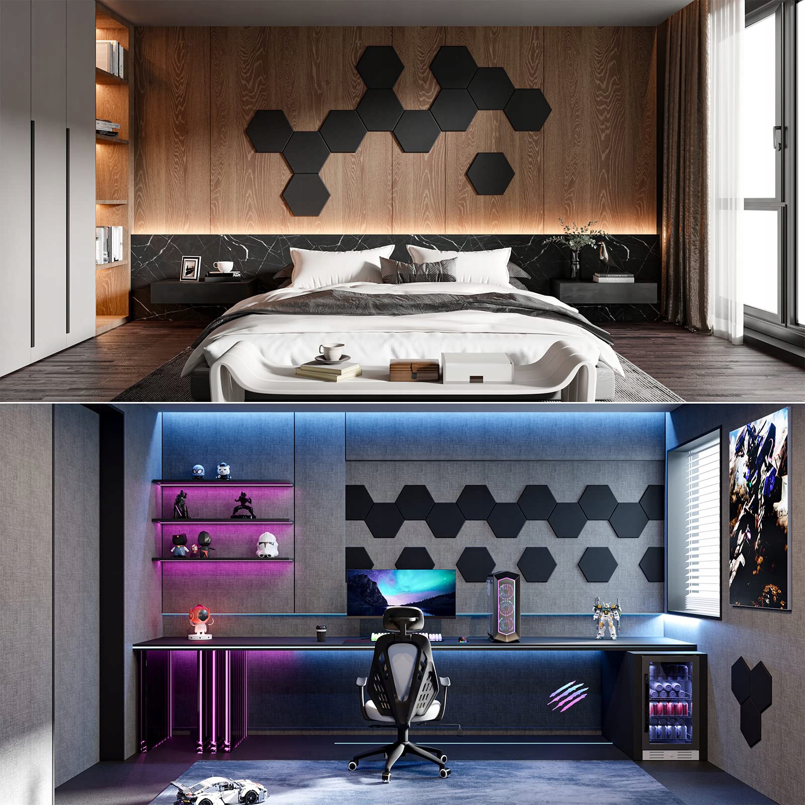 【Стильний зовнішній вигляд】 Ми використовуємо шестикутну панель із стільниковою структурою, оскільки вона в даний час дуже модна. Це можна вважати декоративною стіною, додаючи трохи мистецтва улюбленому інтер'єру та залишає незліченну кількість прекрасних спогадів у середовищі, сповненому комфорту та радості. Розміри - 30 х 26 х 0,9 див. 4 Він також може бути встановлений на стелі, за телевізором або під килимом.