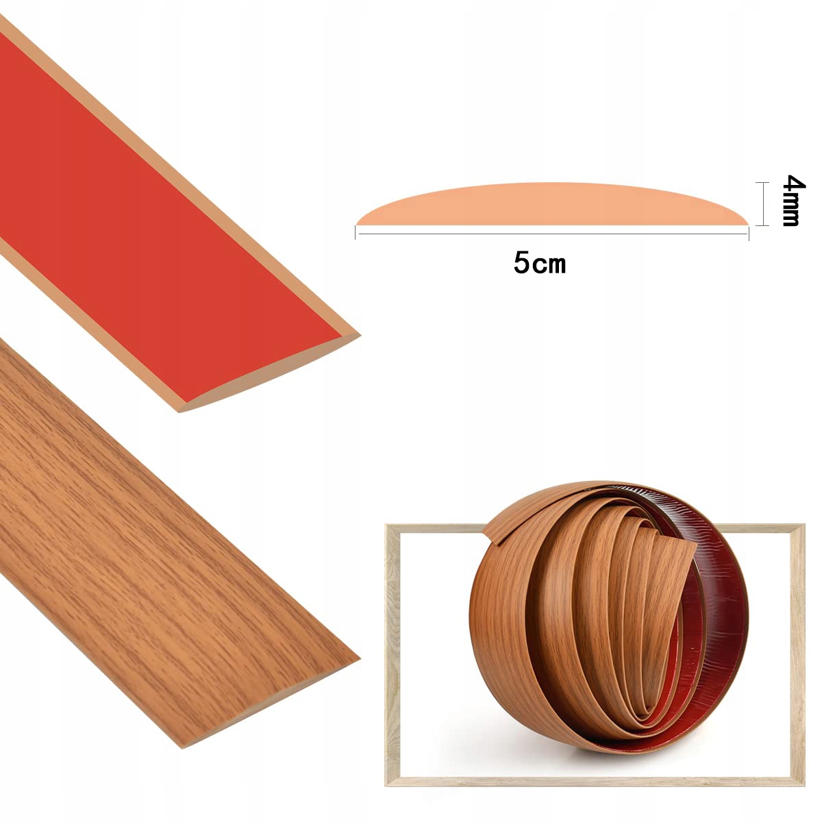 двері для ламінованих підлог виготовлені з високоякісного та м'якого матеріалу ПВХ, поверхня краю килима стійка до зносу та подряпин, нелегко плям і легкої для очищення. довжина 3 м, ширина 5 см і товщина 4 мм.