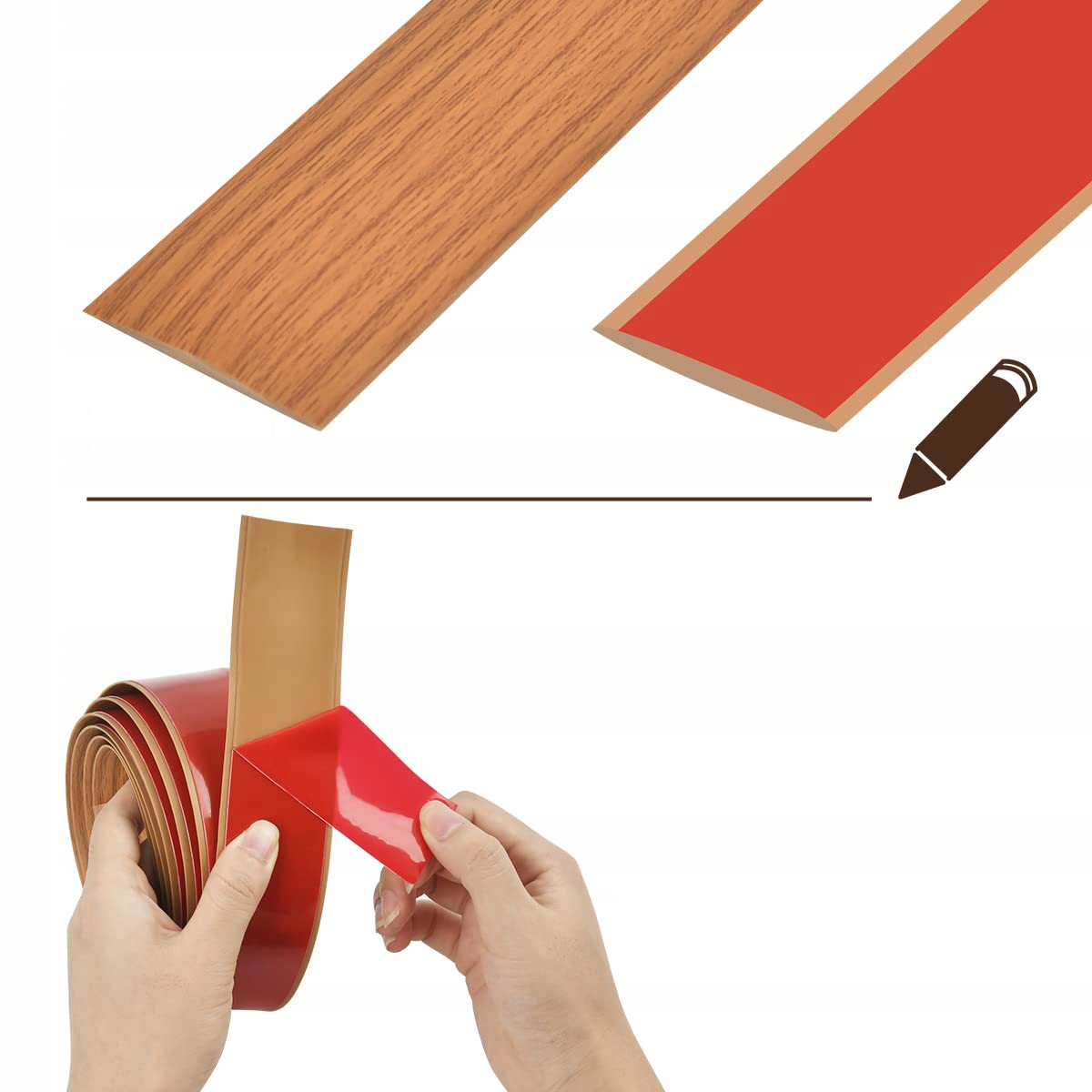Профільні смуги, що з'єднують ламіновані підлоги, з «шкіркою та клеєм» та сильною самостійною функцією, самостійним відокремлюючим ременем з ПВХ легко покрити зазори, тріщини та пошкоджені куточки, що є достатнім для застосування сильного тиску. Розрив підлоги можна швидко відремонтувати за допомогою цього практичного профілю плоскої підлоги з ламінованим краєм, що швидко та простим способом з'єднує дверну смужку.