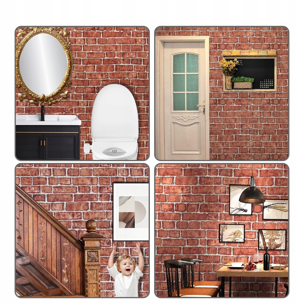 🧱, розроблений у червоному цегляному малюнку, має справжні деталі, які додають сільського стилю. Форми стін, забезпечуючи велику гнучкість.