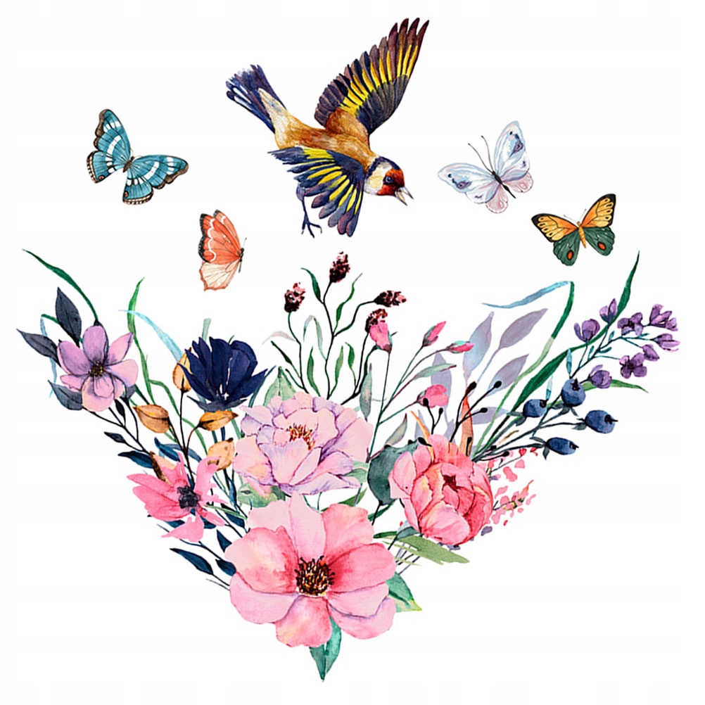 Само -адгезивні туалети для туалетів Квіти птахи метелики