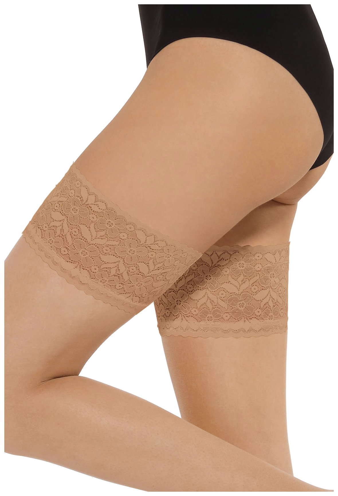 Практичні та делікатні, силіконові смуги гарантують надійність панчох, що підтримують себе. Вони дуже добре дотримуються тіла. Завдяки їхньому використанню матеріал не ковзає і не зморшки . Силіконові смуги замасковані з широкою декоративною смужкою - від чуттєвого мережива.