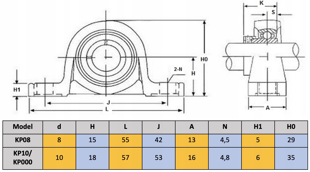 підшипник KP10 використовується як кінцева ручка лінійного валу або трапецієподібного гвинта