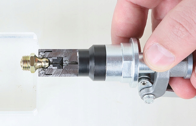 • Після прикріплення він залишається в вісь приєднаним для змащування ніпеля не потрібно тримати, як звичайні насадки.
