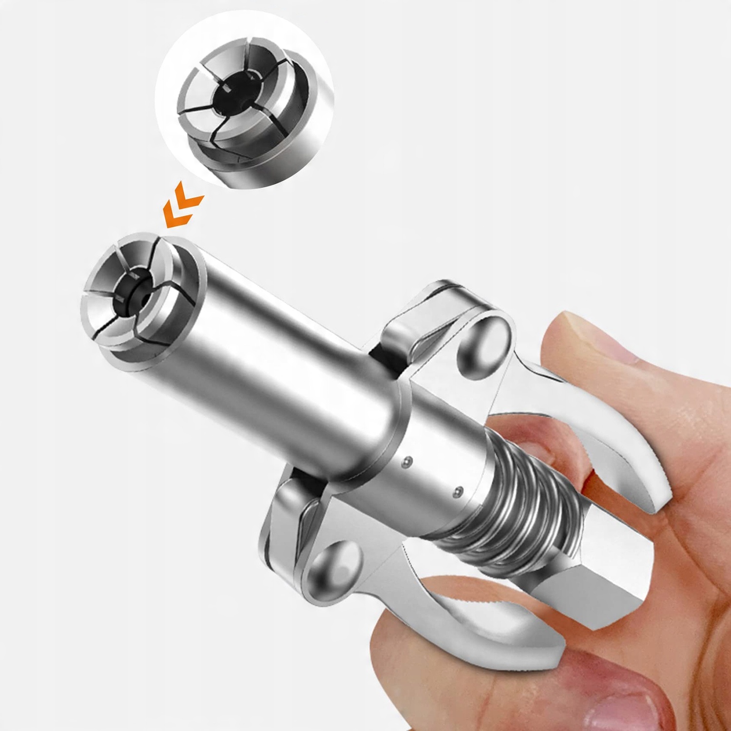 З’єднувач мастильного пістолета з гладкою, міцною функцією блокування прикусу на 6 губок дозволяє працювати однією рукою, не потрібно тримати його під час змащування, після блокування , роз’єм мастильниці можна від’єднати руками, щоб керувати мастильницею. Швидке з’єднання та відпускання, з механізмом плавного намотування, просто натисніть на спусковий гачок і спрямуйте з’єднувач на фітинг мастильного пістолета, вставте та відпустіть спусковий гачок, з’єднувач міцно стисне з’єднувач. Немає потреби утримувати курок під час змащування.