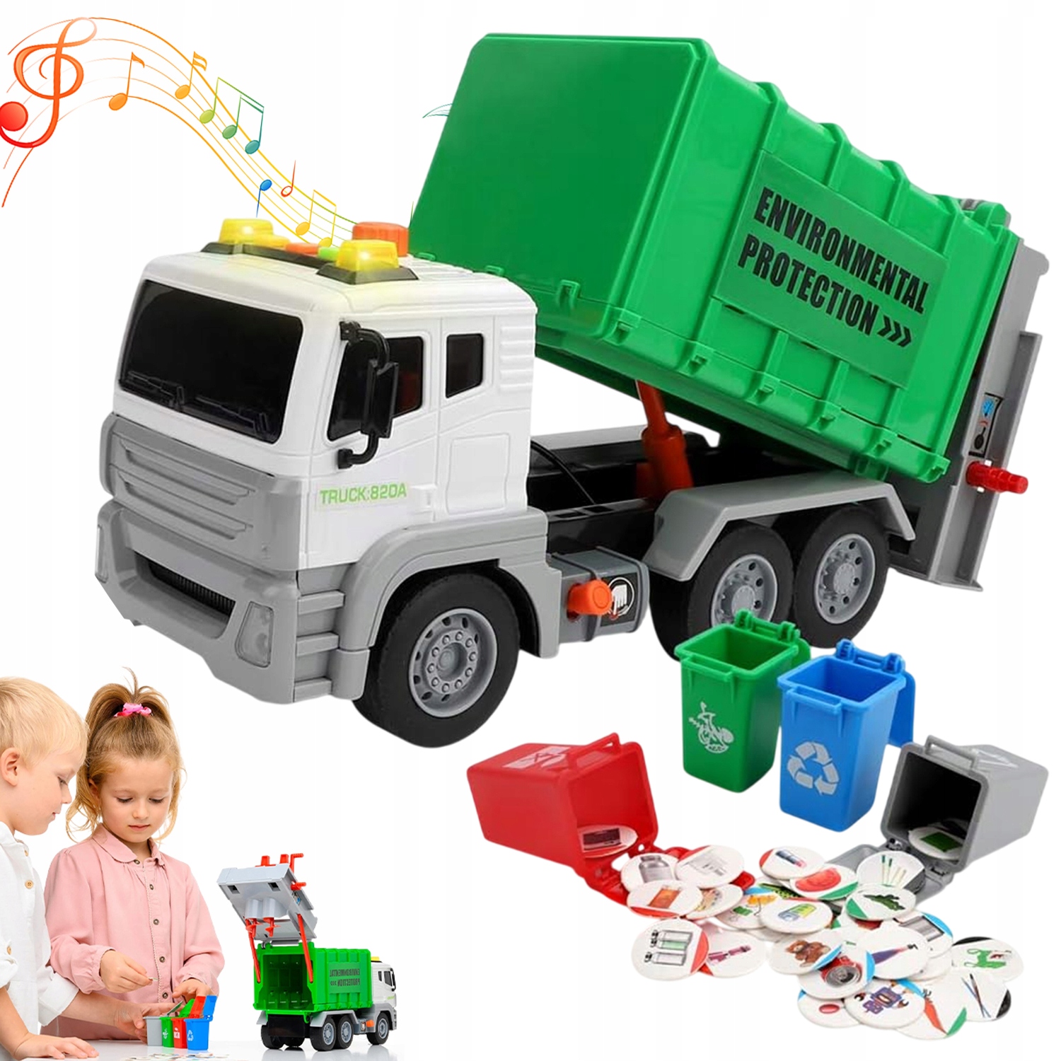 SAMOCHÓD ŚMIECIARKA CIĘŻARÓWKA ZABAWKI DLA DZIECI Z ŚWIATŁO LED I DŹWIĘK
