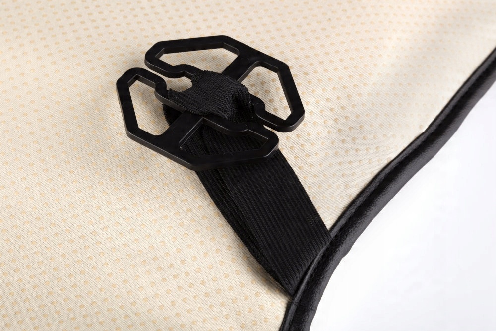 Оснащений еластичними ременями кріплення, його можна встановити миттєво без спеціальних інструментів. Його універсальна легка конструкція та класичний дизайн дозволяють ідеально підходити до будь-якого типу автомобіля. Довговічна тканина, з якої він виготовлений, ніжна до шкіри та не викликає роздратування.