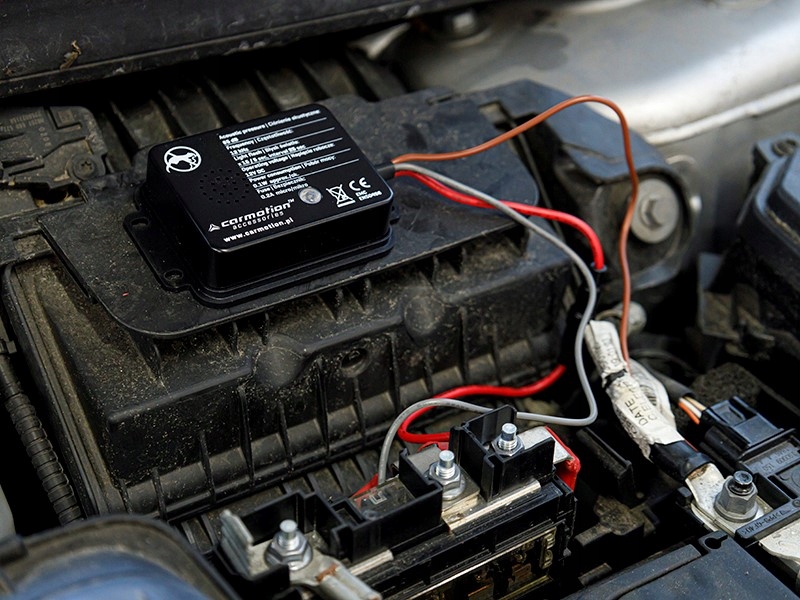 Пристрій оснащено двома кабелями з роз’ємами-вушками, які слід під’єднати до гвинтів клем акумулятора. Вбудоване гніздо запобіжника забезпечує додатковий захист від короткого замикання.