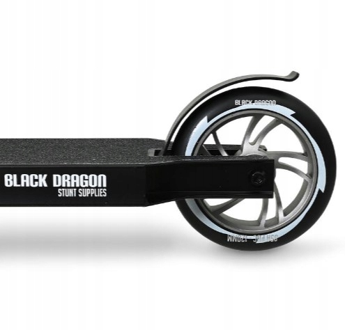 Правте скейтпарком із трюковим самокатом Black Dragon Vert Racer! Трюковий скутер Black Dragon має надзвичайно міцну прямокутну структуру рами з потрійним затискачем і виготовлений з алюмінію та міцної сталі.