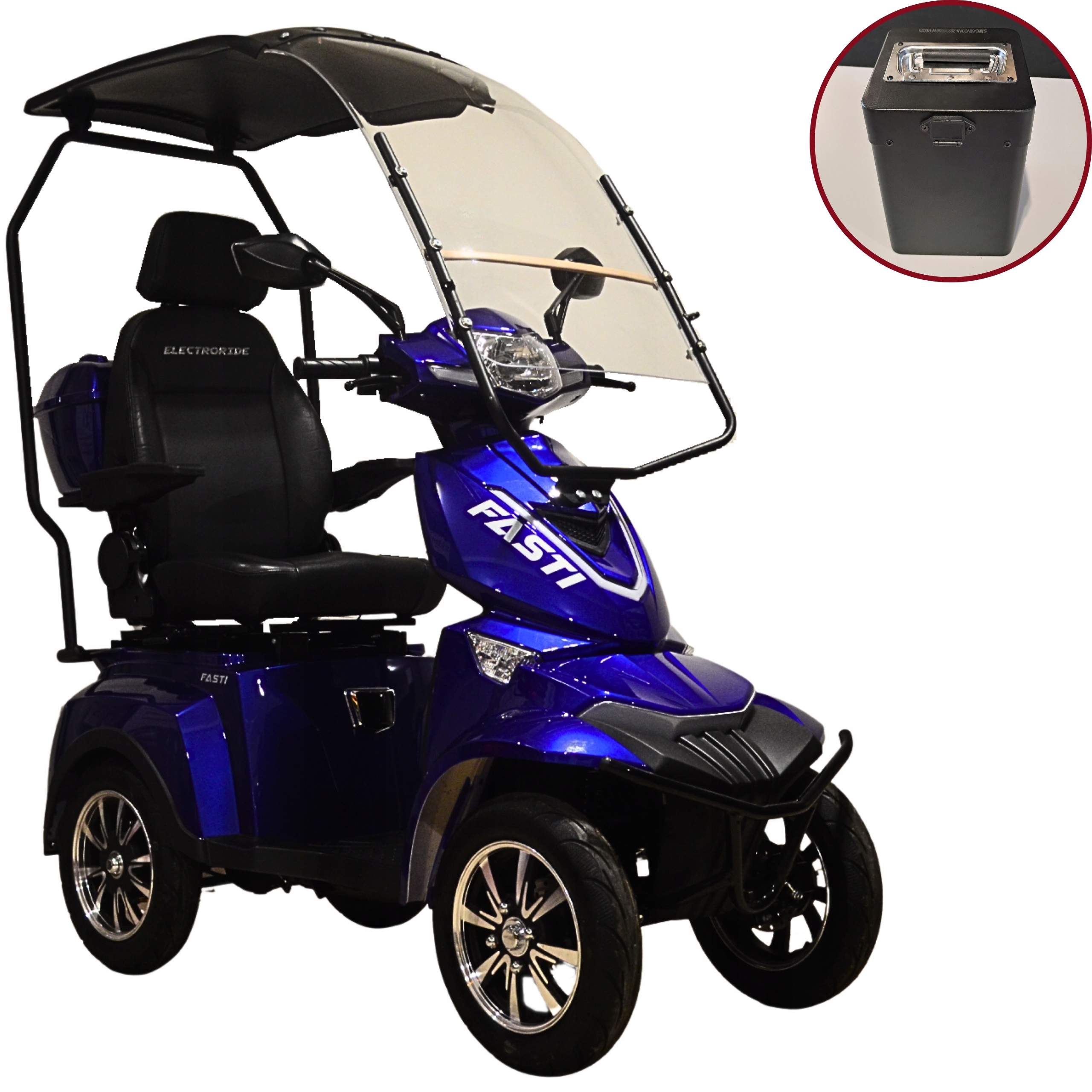 зручний і безпечний чотириколісний автомобіль, легко пересувається! Транспортний засіб має медичну довідку, яка дозволяє водієві в'їжджати будь-де, куди він пішов би. Модель ELECTRORIDE FASTI 4 MAX доставить вас у парки, магазини та торгові центри. Під час дорожнього руху транспортний засіб розглядається як пішохід, тому водій не зобов’язаний мати жодних прав незалежно від віку!