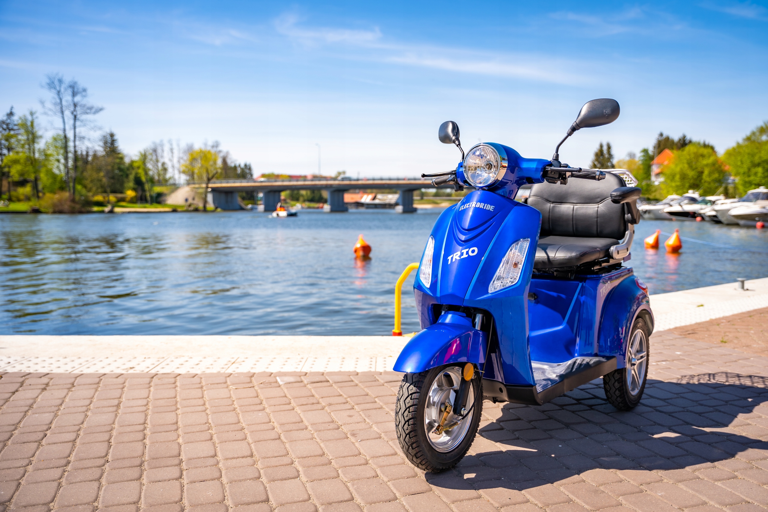 Триколісний електросамокат ELECTRORIDE TRIO - це компактний і простий у використанні транспортний засіб, що полегшує пересування. Він надзвичайно маневрений завдяки одному передньому колесу. Має електромагнітне гальмо, яке автоматично гальмує на першій передачі, коли ви відпускаєте важіль. В умовах дорожнього руху TRIO вважається мопедом, тому потребує реєстрації. Людям, які народилися до 1995 року, не потрібно мати водійські права – все, що вам потрібно, це посвідчення особи.