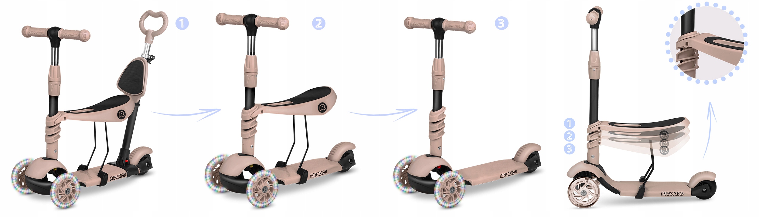 ✔ 3-ступеневе регулювання висоти сидіння та керма,