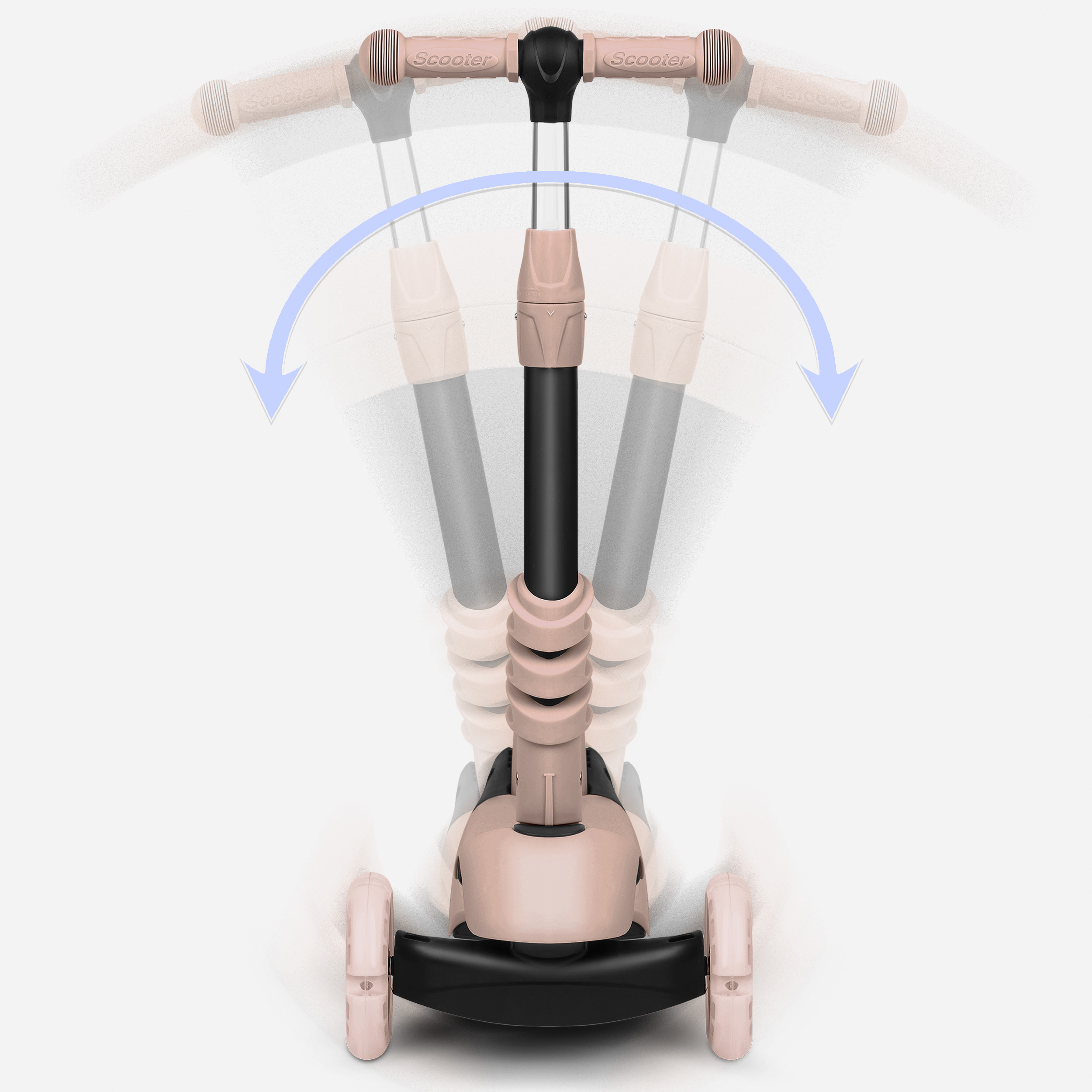 Керування здійснюється лише за допомогою балансування тіла без повороту керма. Просто злегка нахиліться в потрібну сторону і все! Дитина швидко оволодіває цією технікою катання і при цьому тренує почуття рівноваги. Самокат під час повороту тримається вертикально завдяки трьом колесам.
